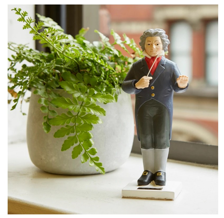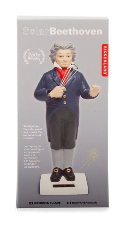 Put Beethoven in the sun and he moves his baton!• Material: Polyresin, Solar Panel• Solar Beethoven conducts all day long• Dimensions: 5,7 x 17,2 x 5,1 cm• The base contains a solar panel so that it automatically remains charged by solar energy.