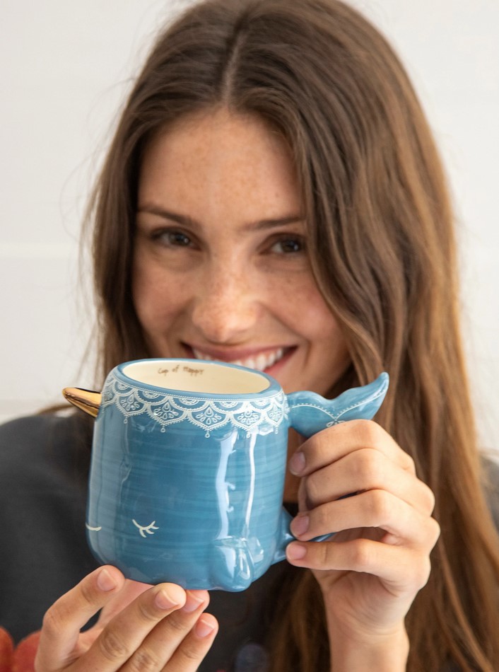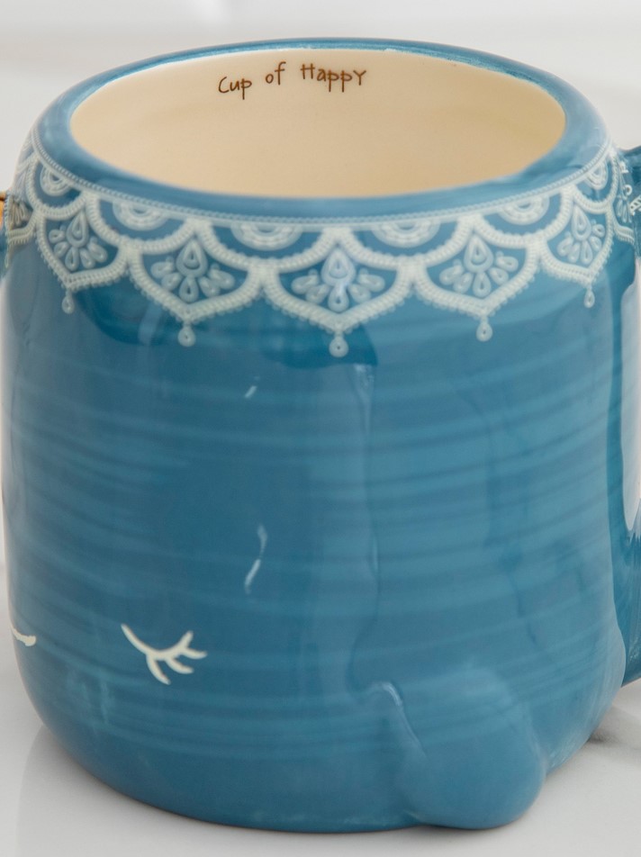 Our hand-sculpted Folk Art Mug will cheerfully greet you in the morning to start your day with a smile. The encouraging mini messages peep out at you from just under the rim. While they do an awesome job at holding coffee, tea, or even the occasional serving of cereal, their talents don’t stop there. Perch one on your shelf to hold a handful of wildflowers from your garden or plant a succulent to set beside your kitchen sink. Let the happiness spill onto your desk as a pen, pencil, or binder clip holder. • Material: Ceramic• Dimensions: 10,16(H) x 7,62 cm diameter• Hand sculpted, features sentiment on the inside rim• Dishwasher Safe.Do Not Microwave• Capacity: 470 ml