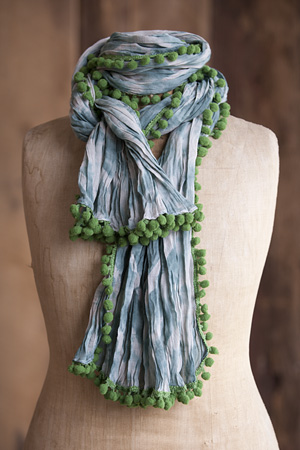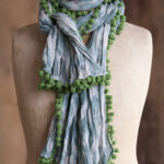Φουλάρι Με Pom Pom Σιέλ/Γκρι