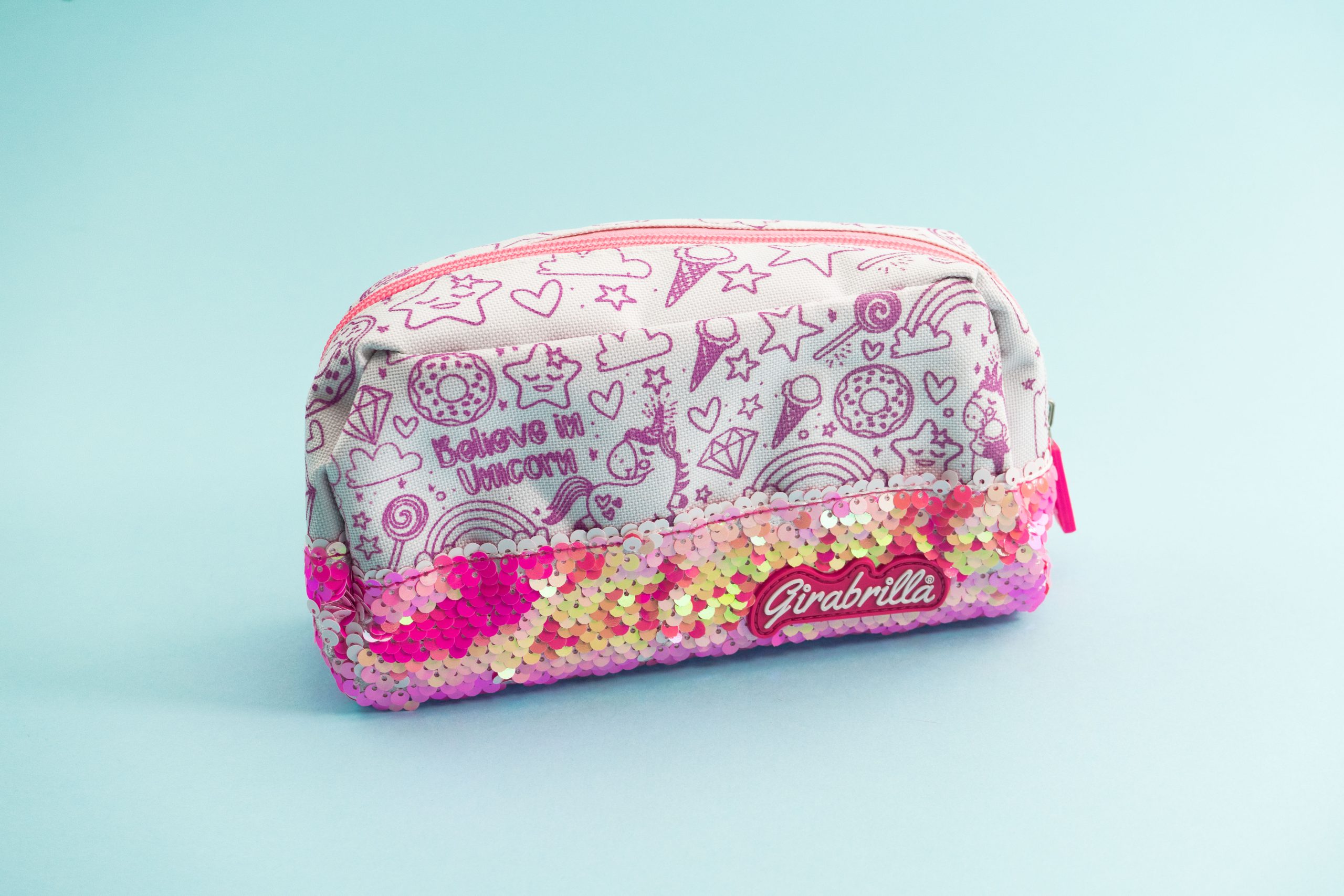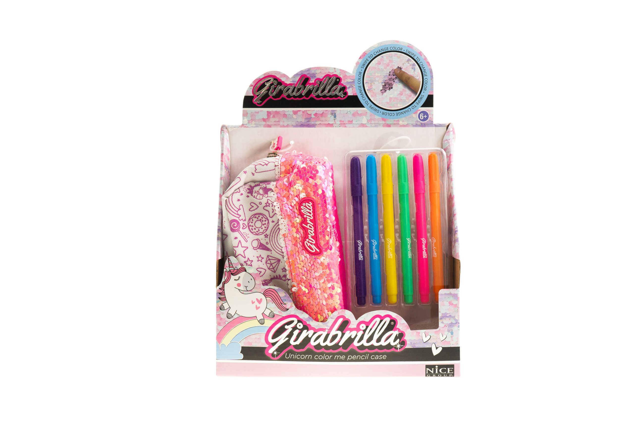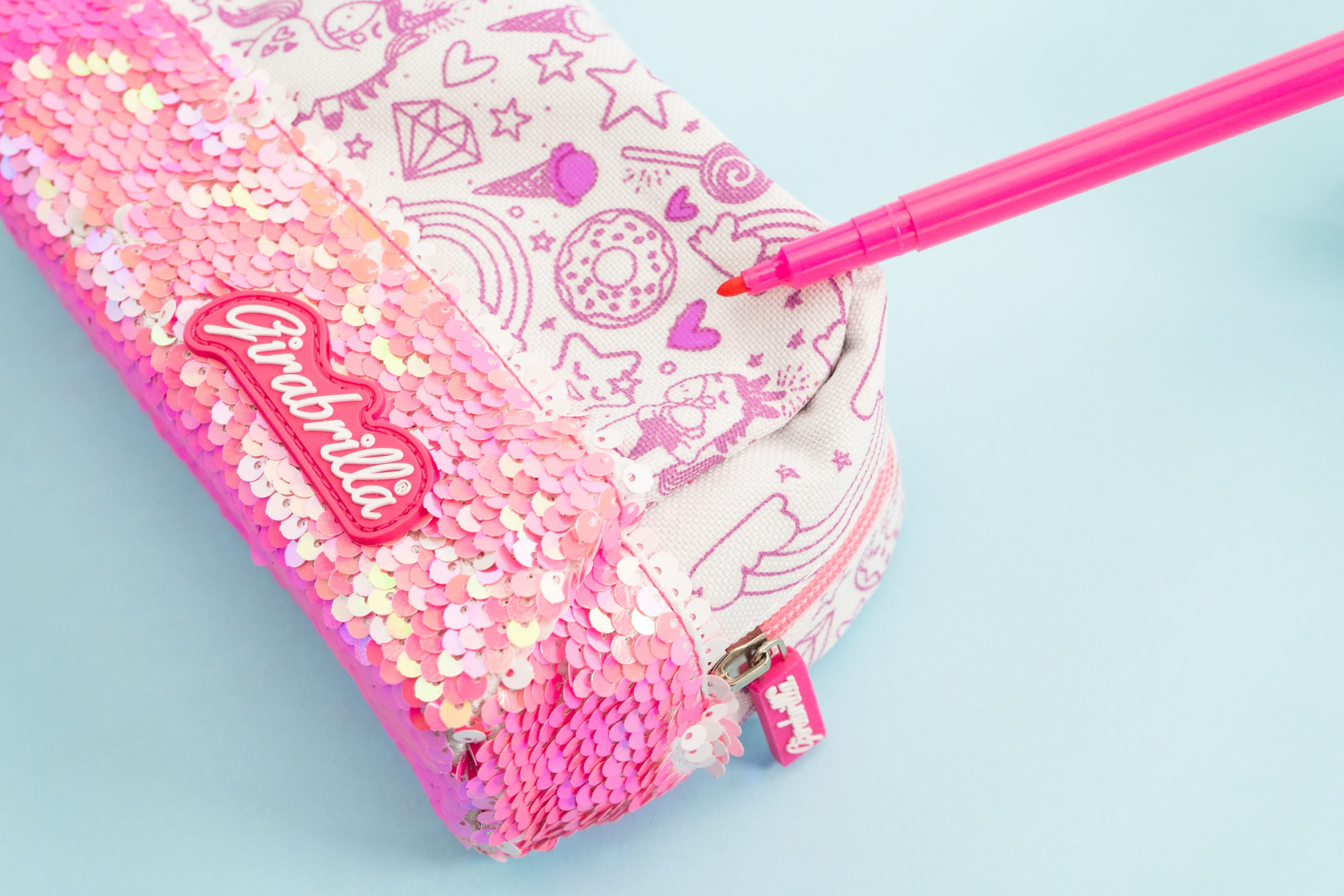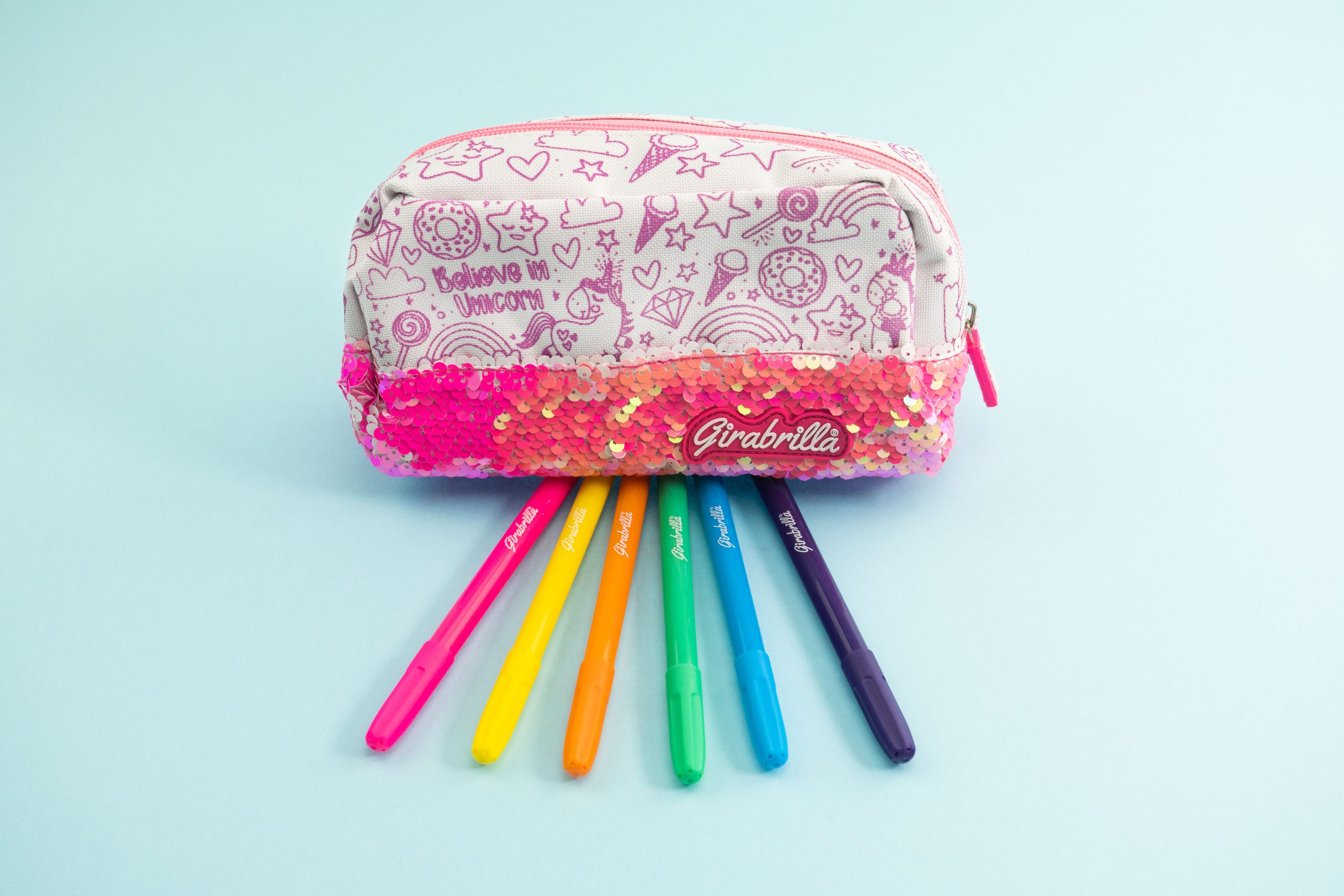Decorated pencil case with Girabrilla flipping sequins details! includes 6 markers to customize the texture as you prefer!• Dimensions: 23,5 x 33,5 x 6 cm