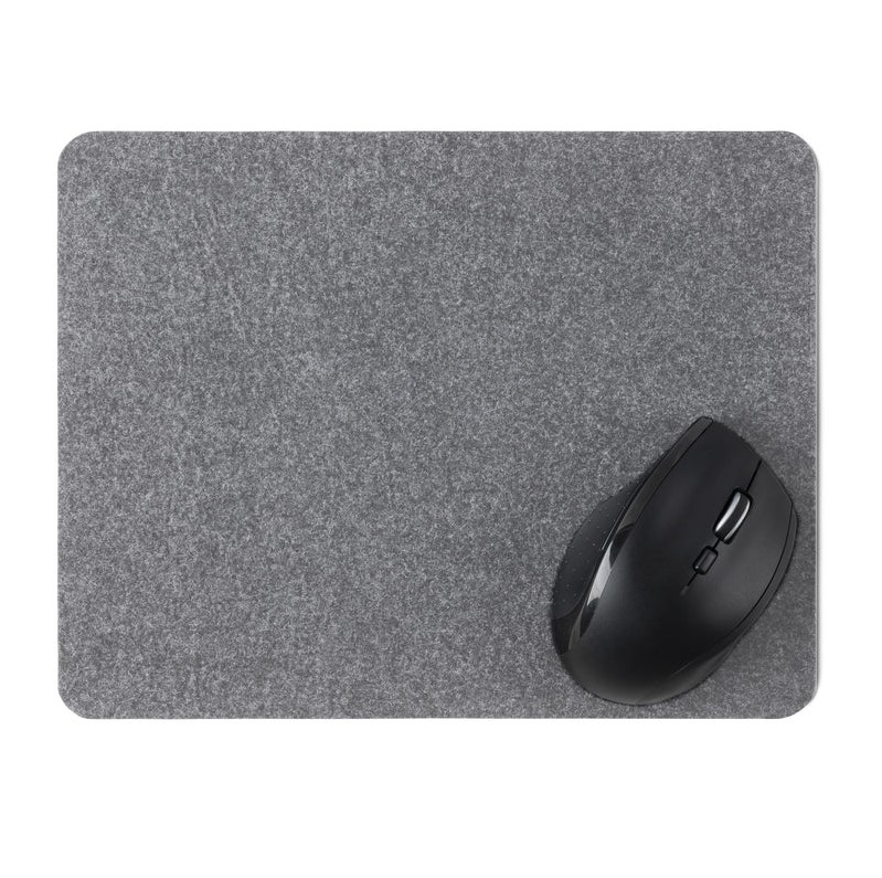 The felt mouse pad protects your desk while providing a surface for your mouse to glide easily.The underside features a rubber grip to ensure the mat stays in place while you work.• Soft felt pad to protect your desk.• Non-slip rubber on reverse side• Material: rubber, felt• Dimensions: 22,9 x 28 cm