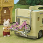 Family Campervan seats up to seven. Enjoy cooking, barbecue, cycling, fishing, and other fun camping activities!Two adult figures, two child figures, one baby figure, and two twin figures can all sleep in the Family Campervan. Seats will recline into beds. The kitchen stored under the dashboard contains a frying pan, corncob, and grilled fish for cooking fun. Use together with the childrens' fishing rod, fish, and bucket to have your figures cook a freshly caught fish for the family! The child mountain bike, baby bicycle, and fishing rod can be stored in the rear carrier.Combine with Adventure Tree House, Lakeside Lodge, Baby Ropeway Park, Baby Hedgehog Hideout, or Baby