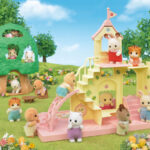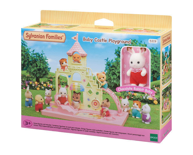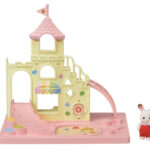 Baby Castle Playground is a castle-themed playground for babies, and includes one baby figure. Baby Castle Playground comes as a set with one Chocolate Rabbit Baby figure. This playset is immediately ready for play as a stand-alone product. It includes a slide, ladder, sandbox, and other fun baby playthings. The castle parts can also be placed on top of Baby Castle Nursery for an even more elaborate school setup (sold separately).