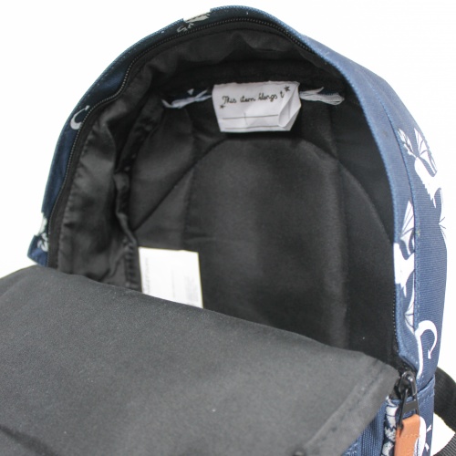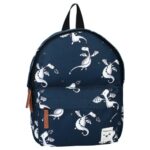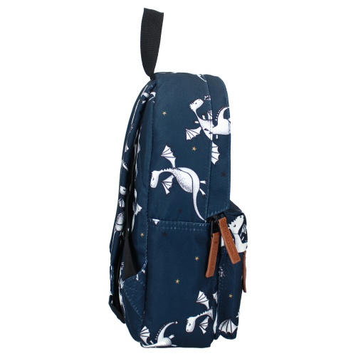 Exciting adventures with imaginative creatures and made from recycled PET bottles, Kidzroom's Magic Tales backpack is a must-have! This cool, compact blue backpack from Kidzroom is practical to use. The white dragons fly with your son or daughter to school, the sports club or to grandma and grandpa. The brown zip cords are sturdy and the loop at the top allows you to take the backpack with you or hang it up. The backpack also has adjustable and padded shoulder straps and a padded back panel for extra carrying comfort. The main compartment has room for a lunch box or sportswear. The small front pocket is handy for storing smaller items. The backpack has a name and phone number label on the inside, so everyone knows who this trendy backpack belongs to. It also has an elastic pocket for a drinking bottle, to prevent it from slipping around. This backpack is lined for better quality and longer durability. • Material: 100% Cotton/Polyester • Dimensions (HxWxD): 31 x 23 x 9 cm