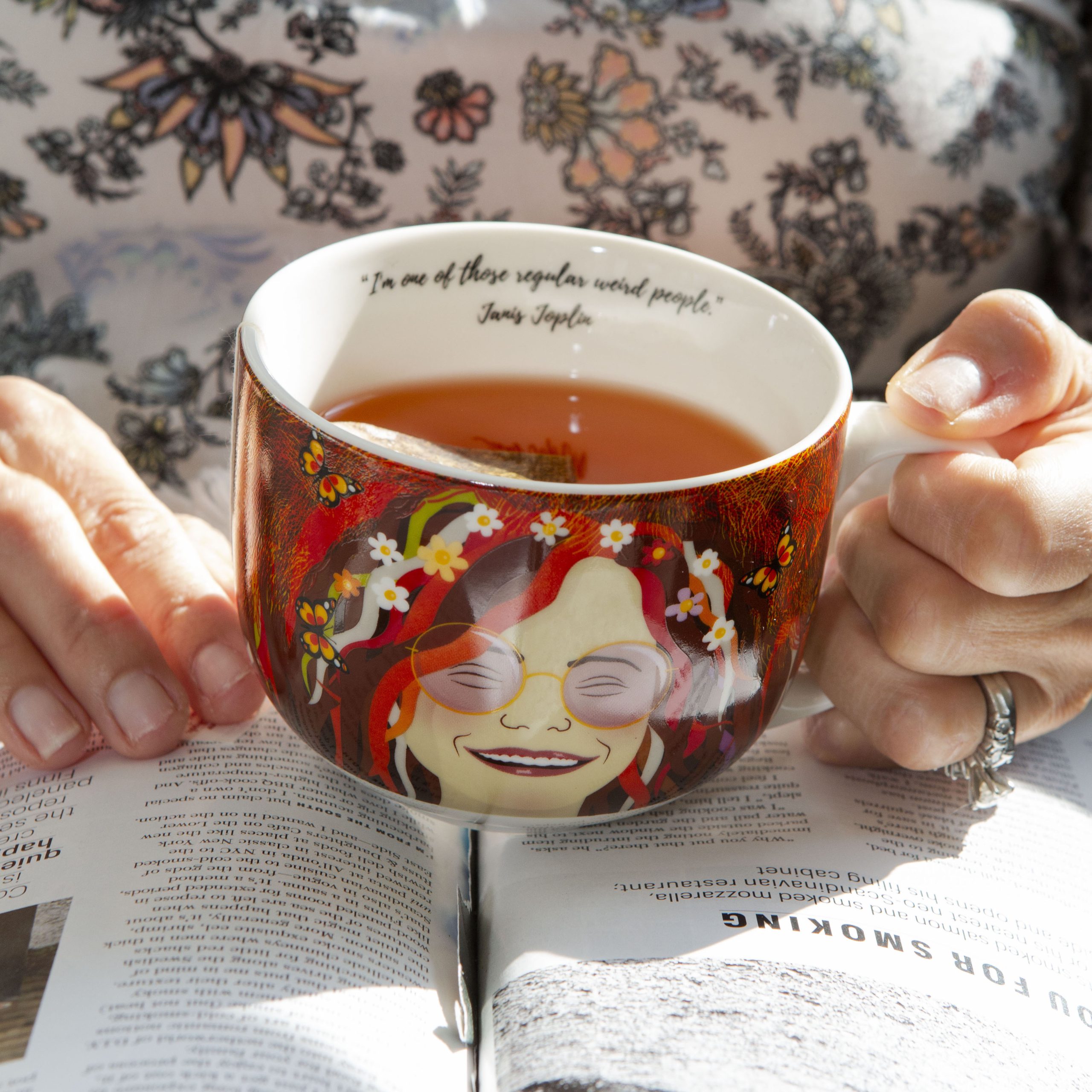 Whether it's for coffee, tea or soup; the wide-mouth and large handle makes it easy to enjoy your drink! And with every sip you will enjoy the inspirational quote inside the rim."I'm one of those regular weird people" - Janis Joplin.• Material: Porcelain• Dimensions: 14,5 x 8,3 x 7,6 cm
