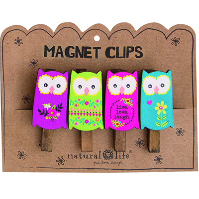These colorful owl design magnet clips will hold important pictures, papers, invitations and more on your fridge while creating happiness every time you see them! These magnet clips come packaged as a set of four and are made of wood.