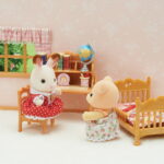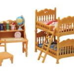 Children's Bedroom Set includes a bed and desk for creating a child's bedroom. Children's Bedroom Set features beds that can be detached and used individually, or together as a bunk bed. Books and a globe come included, and the globe can be spun around. The shelving on top of the desk can be removed to create a simpler desk. Combining with other figures and furniture sets from the children's room series allows for even more enjoyable pretend play (sold separately).