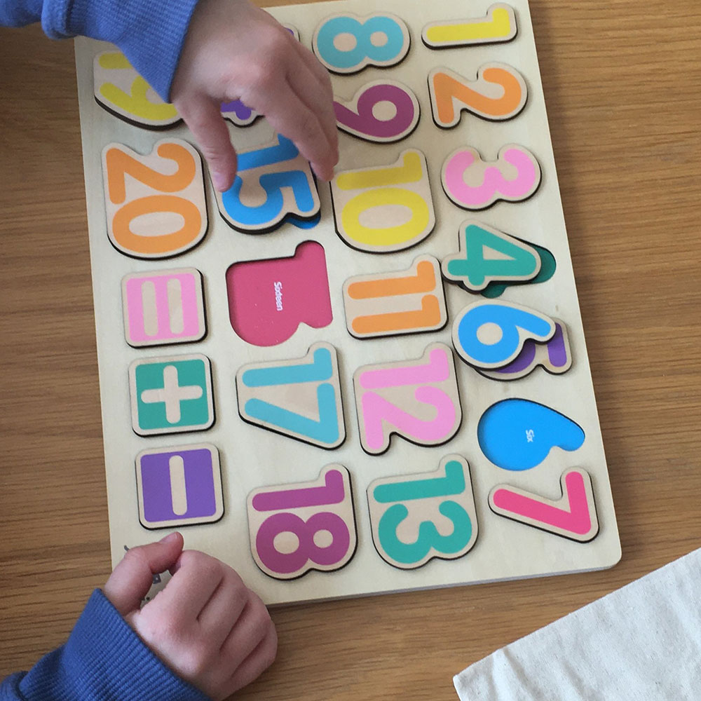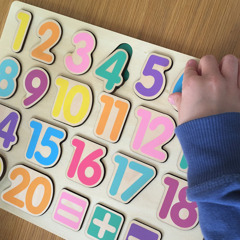 This beautiful number puzzle board features numbers one to twenty, as well as plus, minus and equals symbols for extended learning.Ideal for familiarising little ones with basic maths.Each number word is also written on the base board to encourage recognition.Ideal as a tool for homeschooling and preparation for the transition to school. • Hand Eye Coordination • Dimensions: 30 × 22 cm • Recommended Age Range: 3+ • Material: Natural Wood