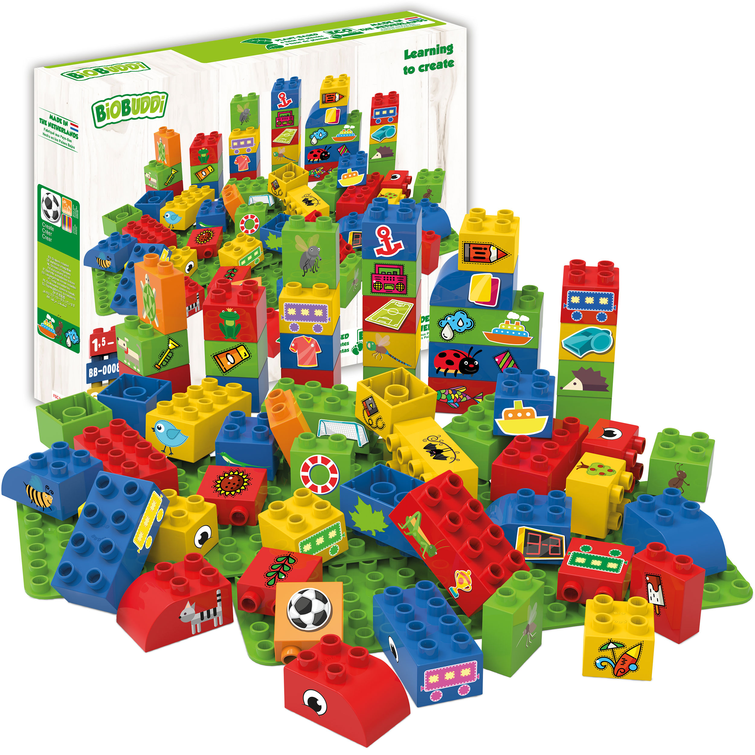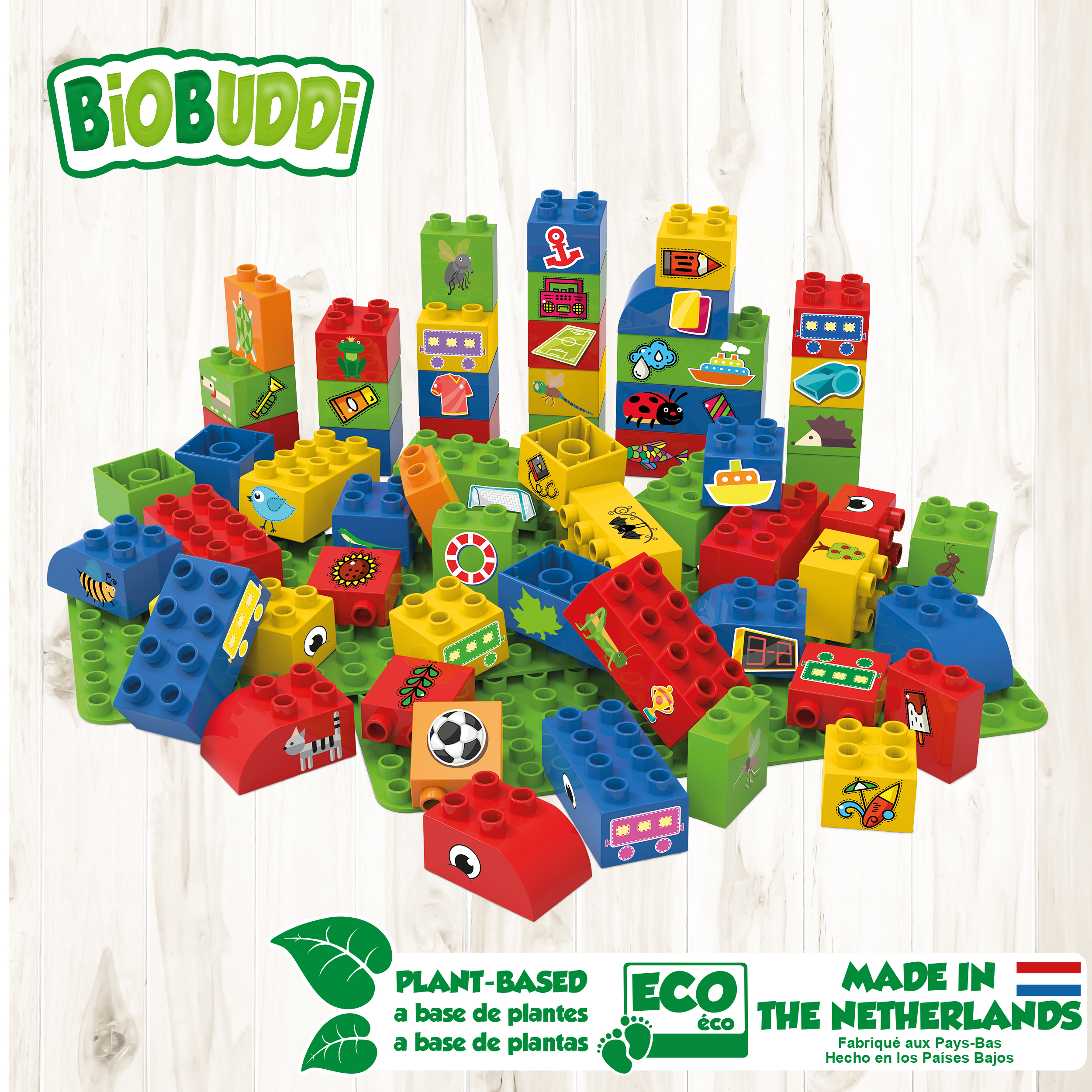 Τα τουβλάκια Biobuddi κατασκευάζονται από υπολείμματα φυτών ζαχαροκάλαμου που παράγονται στην Ολλανδία. Είναι φιλικά προς το περιβάλλον, βιώσιμα, ανακυκλώσιμα και ειδικά σχεδιασμένα για μικρά παιδιά. Τα παιδιά μπορούν να συνδυάσουν τα πολύχρωμα τουβλάκια και με άλλου είδους mega blocks για να ζωντανέψουν τη φαντασία τους εξασκόντας έτσι δημιουργικές τους δεξιότητες, όπως μάθηση χρωμάτων, σχημάτων και πολλά άλλα.