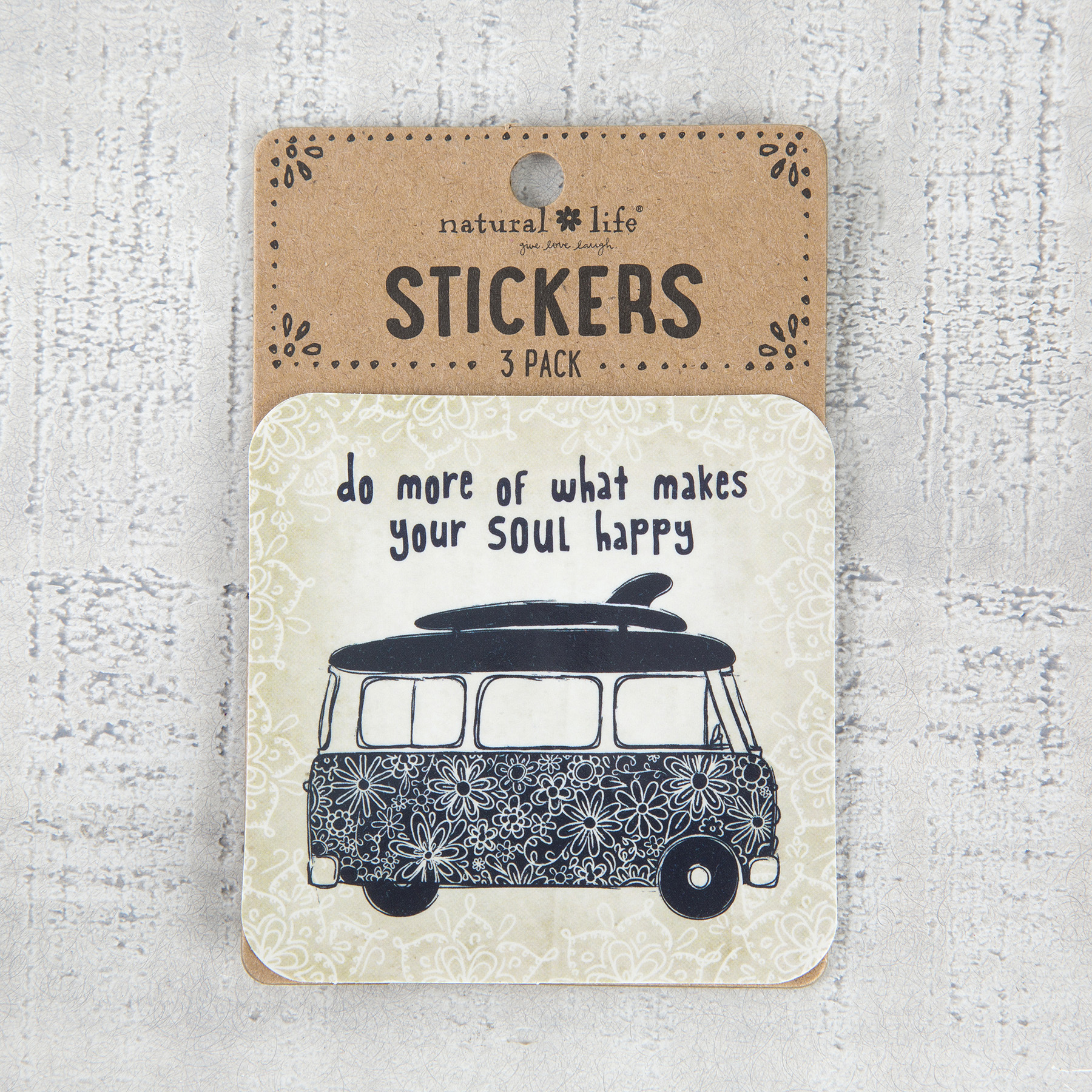 Κάνε τα πράγματα που γεμίζουν την ψυχή σου! Τρία αυτοκόλλητα με το ίδιο υπέροχο εικαστικό και αυτό το εμπνευστικό μήνυμα που χαρίζουν ζωντάνια και χρώμα σε κάθε τετράδιο αλλά και σε κάθε αντικείμενο. Το λαπτοπ σου, το γραφείο σου κι οποιαδήποτε άλλη επιφάνεια μεταμορφώνεται με τα ξεχωριστά αυτοκόλλητα της σειράς και τα μοναδικά τους μηνύματα. Τέλεια για scrapbooking!