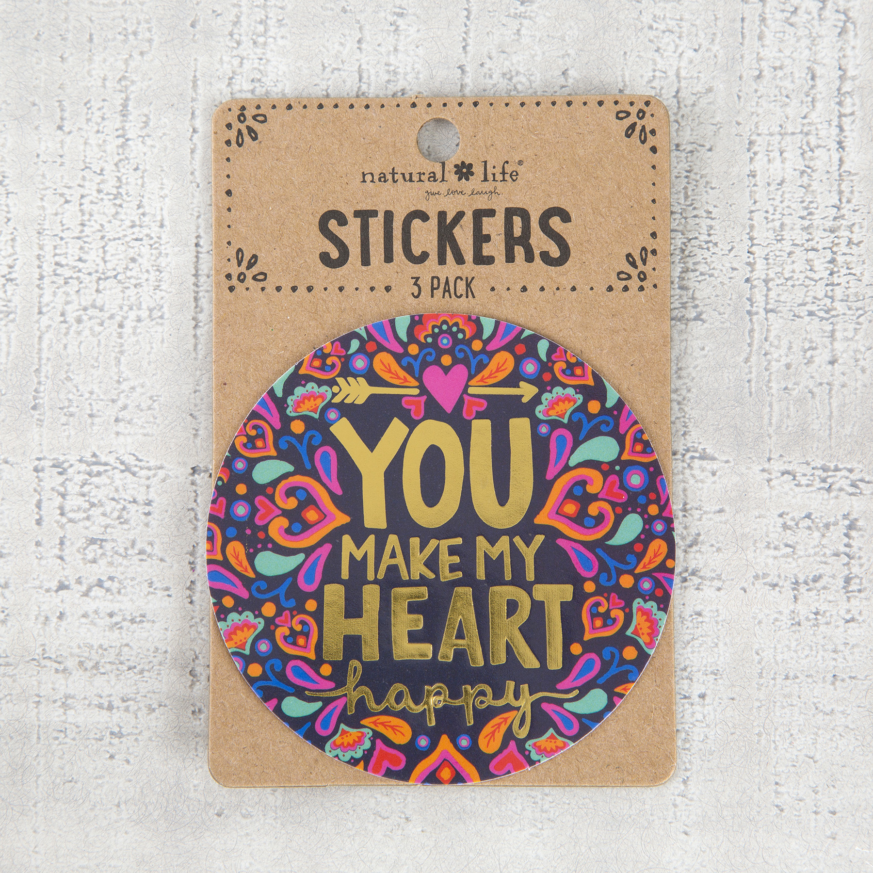 Για όποιον και ό,τι κάνει την καρδιά σου ευτυχισμένη! Τρία αυτοκόλλητα με το ίδιο υπέροχο εικαστικό και αυτό το εμπνευστικό μήνυμα που χαρίζουν ζωντάνια και χρώμα σε κάθε τετράδιο αλλά και σε κάθε αντικείμενο. Το λαπτοπ σου, το γραφείο σου κι οποιαδήποτε άλλη επιφάνεια μεταμορφώνεται με τα ξεχωριστά αυτοκόλλητα της σειράς και τα μοναδικά τους μηνύματα. Τέλεια για scrapbooking!