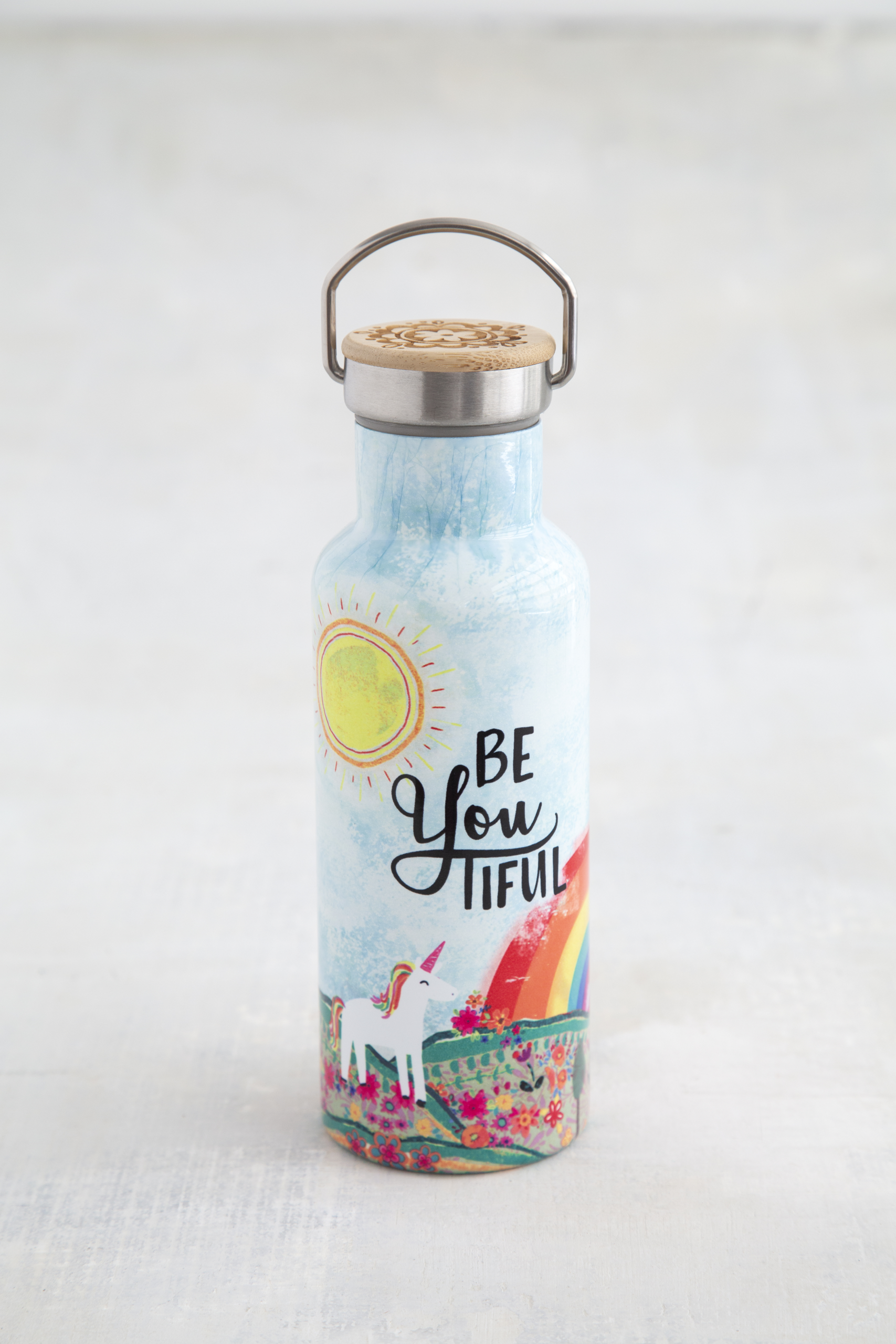 Να είσαι όμορφη με τον δικό σου, ξεχωριστό τρόπο! Ακόμα κι αν δεν είχε αυτό το εμπνευστικό μήνυμα, τον πιο γλυκό μονόκερο, υπέροχα χρώματα και ξύλινο κάλυμμα στο καπάκι, και πάλι θα λάτρευες αυτό το μοναδικό παγούρι γιατί είναι απίθανα χρηστικό! Φτιαγμένο από ανοξείδωτο ατσάλι, αυτό το πανέμορφο μπουκάλι θερμός διατηρεί τα ποτά σου ζεστά ή κρύα όλη την ημέρα! Το ασφαλές καπάκι, το κάλυμμα από ξύλο και η στεγανοποίηση σιλικόνης εξαλείφουν τις διαρροές, ενώ διαθέτει και λαβή, για να το 'χεις μαζί σου στη βόλτα ή στην ποδηλατάδα σου.