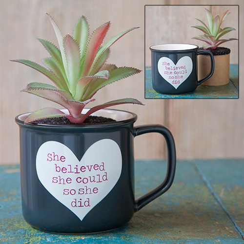 Μια κούπα που μετατρέπεται σε γλαστράκι; Ένα φυτό εσωτερικού χώρου που χαρίζει λίγο πράσινο στη μέρα μας χωρίς να χρειάζεται πότισμα; Τί άλλο θα σκεφτούμε πια! Ζωντάνεψε το περβάζι της κουζίνας, το μπάνιο ή τα ράφια της βιβλιοθήκης σου με αυτές τις έξυπνες κούπες- γλαστράκια. Και το καλύτερο; Το χαριτωμένο, ψεύτικο φυτό αφαιρείται για να πιεις τον καφέ σου και ξαναμπαίνει μετατρέποντας και πάλι την κούπα σου σε... γλάστρα!