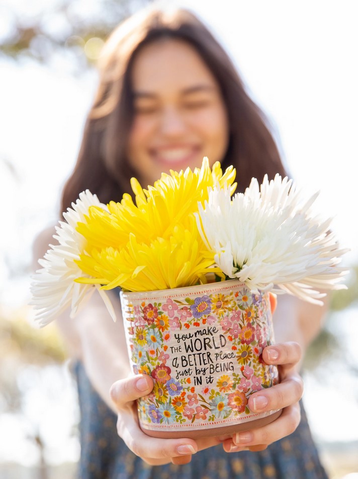 Το «πράσινο» κάνει τον κόσμο μας καλύτερο! Γι' αυτό, απόκτησε το γλαστράκι You Make The World A Better Place από τη Lazy Suricata που είναι ιδανικό για να φυτέψεις τα αγαπημένα σου μικρότερα φυτά, όπως παχύφυτα και αρωματικά φυτά, και ομόρφυνε κάθε δωμάτιο του σπιτιού ή και το γραφείο!• Υλικό: Τερακότα• Διαστάσεις: 13,3 (Υ) x 10,8 εκ. διάμετρος