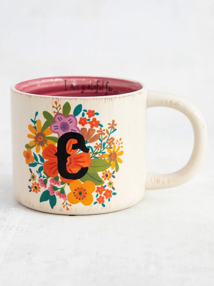 Κάνε το ιδανικό δώρο στον εαυτό σου ή σε κάποιον που αγαπάς, χαρίζοντάς του μία πανέμορφη κεραμική κούπα με το αρχικό του ονόματός του! Στις ξεχωριστές κούπες της σειράς, τα γράμματα εμφανίζονται μέσα σε μια έκρηξη χρωμάτων και λουλουδιών κάνοντας τη διάθεση μας να "ανθίζει". Σμιλεμένη στο χέρι, με ένα κρυφό μήνυμα στο εσωτερικό που σε προτρέπει να δείξεις ευγνωμοσύνη για οτιδήποτε συμβαίνει στη ζωή σου και θεωρείς οτι αξίζει να το κάνεις, η κούπα αυτή θα γίνει αναπόσπαστο κομμάτι του πρωινού σου αλλά και όλης σου της μέρας!
