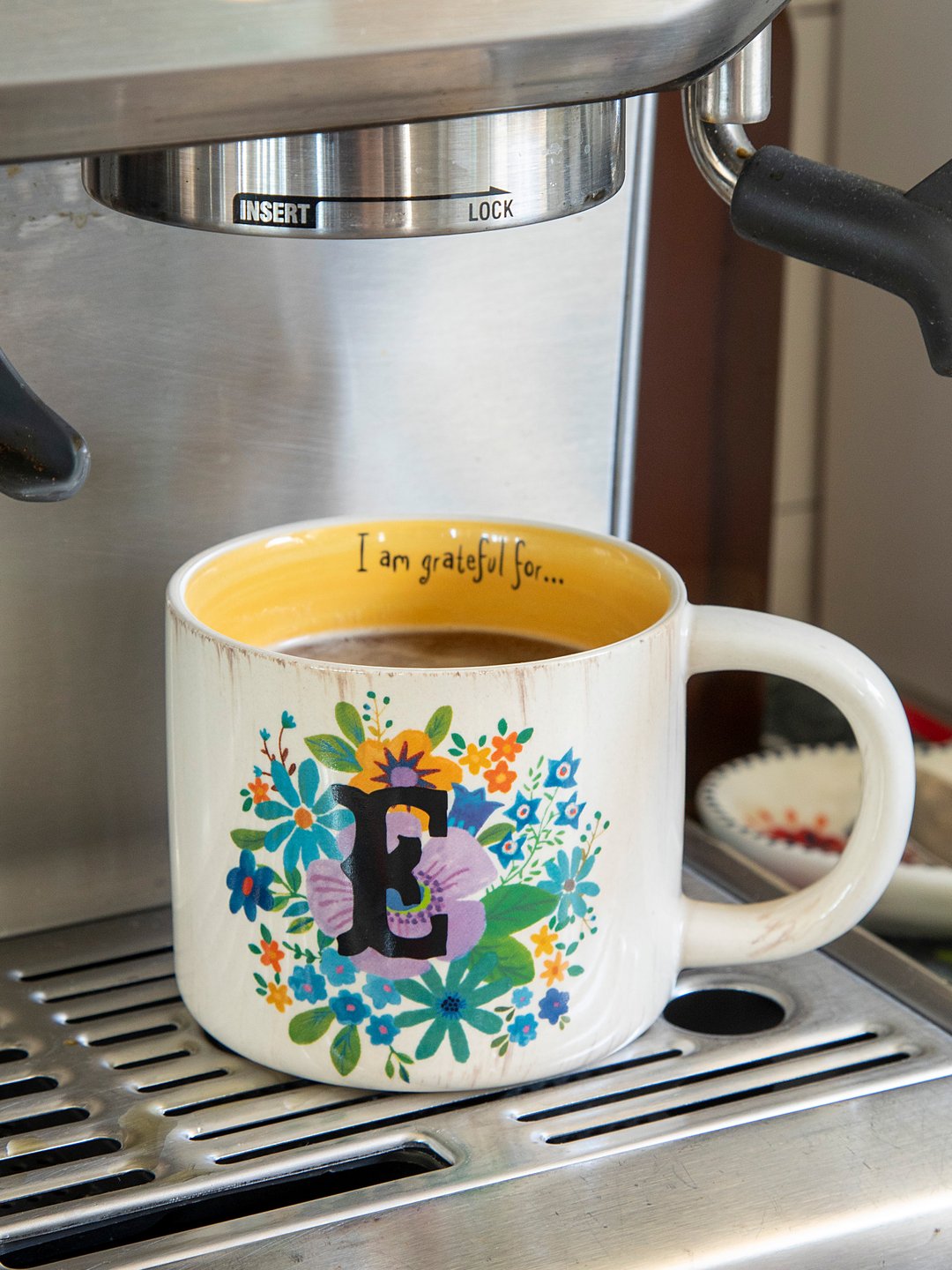 Κάνε το ιδανικό δώρο στον εαυτό σου ή σε κάποιον που αγαπάς, χαρίζοντάς του μία πανέμορφη κεραμική κούπα με το αρχικό του ονόματός του! Στις ξεχωριστές κούπες της σειράς, τα γράμματα εμφανίζονται μέσα σε μια έκρηξη χρωμάτων και λουλουδιών κάνοντας τη διάθεση μας να "ανθίζει". Σμιλεμένη στο χέρι, με ένα κρυφό μήνυμα στο εσωτερικό που σε προτρέπει να δείξεις ευγνωμοσύνη για οτιδήποτε συμβαίνει στη ζωή σου και θεωρείς οτι αξίζει να το κάνεις, η κούπα αυτή θα γίνει αναπόσπαστο κομμάτι του πρωινού σου αλλά και όλης σου της μέρας!• Υλικό: Κεραμική• 7,36 εκ. ύψος , 8,25 εκ. διάμετρος• 300ml• Ασφαλής για χρήση σε πλυντήριο πιάτων και φούρνο μικροκυμάτων.