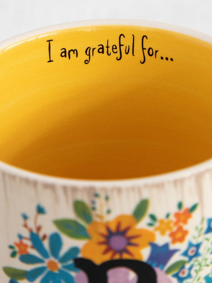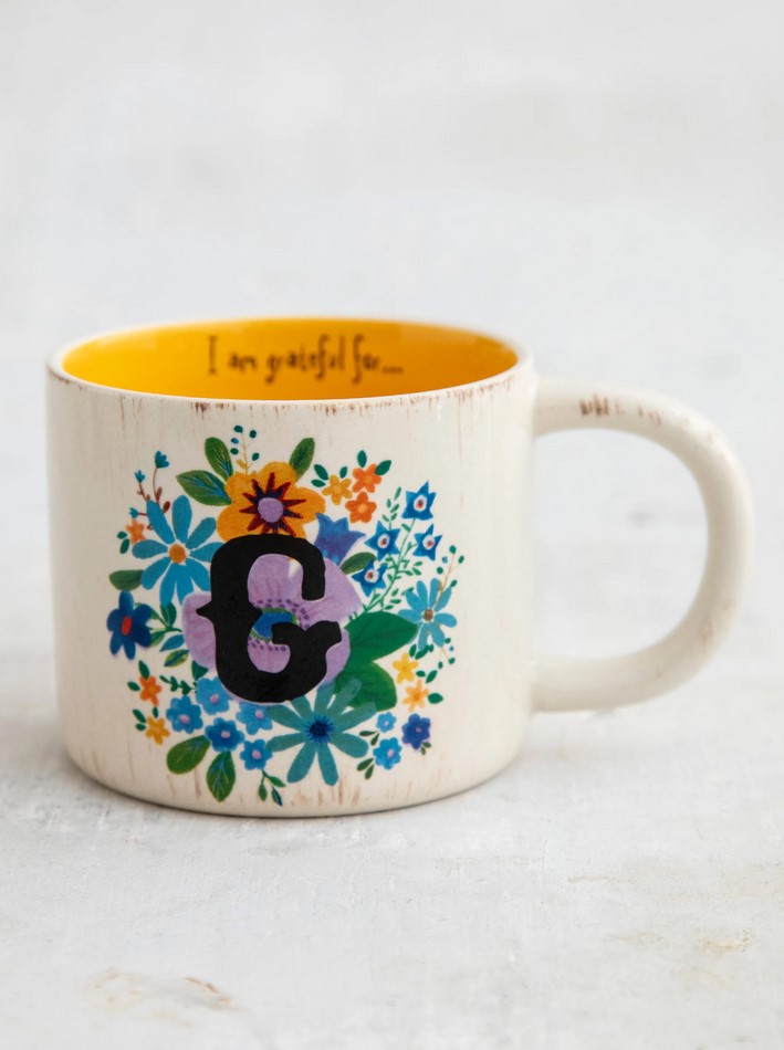 Κάνε το ιδανικό δώρο στον εαυτό σου ή σε κάποιον που αγαπάς, χαρίζοντάς του μία πανέμορφη κεραμική κούπα με το αρχικό του ονόματός του! Στις ξεχωριστές κούπες της σειράς, τα γράμματα εμφανίζονται μέσα σε μια έκρηξη χρωμάτων και λουλουδιών κάνοντας τη διάθεση μας να "ανθίζει". Σμιλεμένη στο χέρι, με ένα κρυφό μήνυμα στο εσωτερικό που σε προτρέπει να δείξεις ευγνωμοσύνη για οτιδήποτε συμβαίνει στη ζωή σου και θεωρείς οτι αξίζει να το κάνεις, η κούπα αυτή θα γίνει αναπόσπαστο κομμάτι του πρωινού σου αλλά και όλης σου της μέρας!