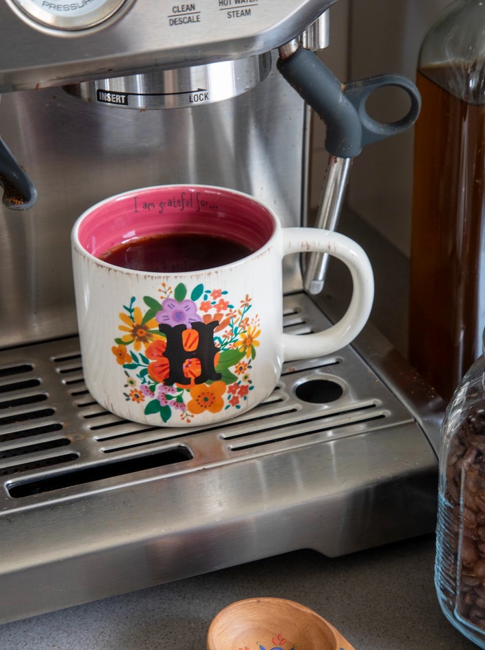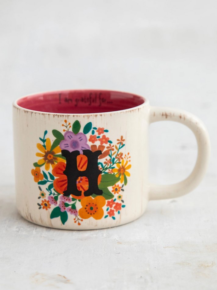 Κάνε το ιδανικό δώρο στον εαυτό σου ή σε κάποιον που αγαπάς, χαρίζοντάς του μία πανέμορφη κεραμική κούπα με το αρχικό του ονόματός του! Στις ξεχωριστές κούπες της σειράς, τα γράμματα εμφανίζονται μέσα σε μια έκρηξη χρωμάτων και λουλουδιών κάνοντας τη διάθεση μας να "ανθίζει". Σμιλεμένη στο χέρι, με ένα κρυφό μήνυμα στο εσωτερικό που σε προτρέπει να δείξεις ευγνωμοσύνη για οτιδήποτε συμβαίνει στη ζωή σου και θεωρείς οτι αξίζει να το κάνεις, η κούπα αυτή θα γίνει αναπόσπαστο κομμάτι του πρωινού σου αλλά και όλης σου της μέρας!