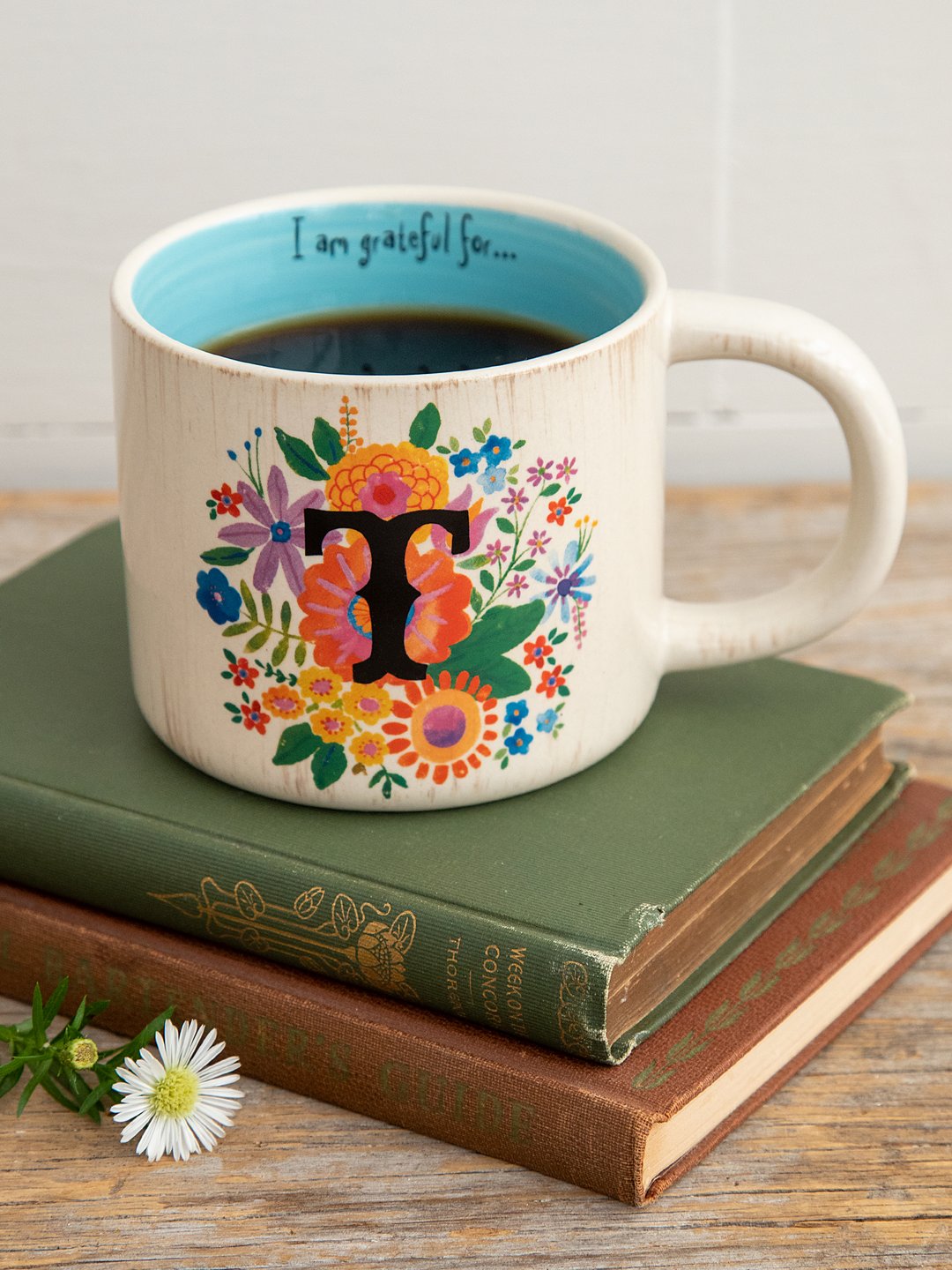 Κάνε το ιδανικό δώρο στον εαυτό σου ή σε κάποιον που αγαπάς, χαρίζοντάς του μία πανέμορφη κεραμική κούπα με το αρχικό του ονόματός του! Στις ξεχωριστές κούπες της σειράς, τα γράμματα εμφανίζονται μέσα σε μια έκρηξη χρωμάτων και λουλουδιών κάνοντας τη διάθεση μας να "ανθίζει". Σμιλεμένη στο χέρι, με ένα κρυφό μήνυμα στο εσωτερικό που σε προτρέπει να δείξεις ευγνωμοσύνη για οτιδήποτε συμβαίνει στη ζωή σου και θεωρείς οτι αξίζει να το κάνεις, η κούπα αυτή θα γίνει αναπόσπαστο κομμάτι του πρωινού σου αλλά και όλης σου της μέρας!