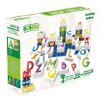 Αυτό το διασκεδαστικό και εκπαιδευτικό σετ αποτελείται από 36 οικολογικά τουβλάκια και βοηθά στη διδασκαλία της αγγλικής αλφαβήτου και των πρώτων, απλών λέξεων στα παιδιά, προωθώντας ταυτόχρονα τις κινητικές δεξιότητες και άλλες αναπτυξιακές συμπεριφορές. Περιλαμβάνει μια μπλε βάση, λευκά και χρωματιστά τουβλάκια και αυτοκόλλητα με γράμματα που μπορούν να τοποθετηθούν πάνω στα τουβλάκια. Τα παιδιά μπορούν να παίζουν για ώρες, διασκεδάζοντας ενώ μαθαίνουν!
