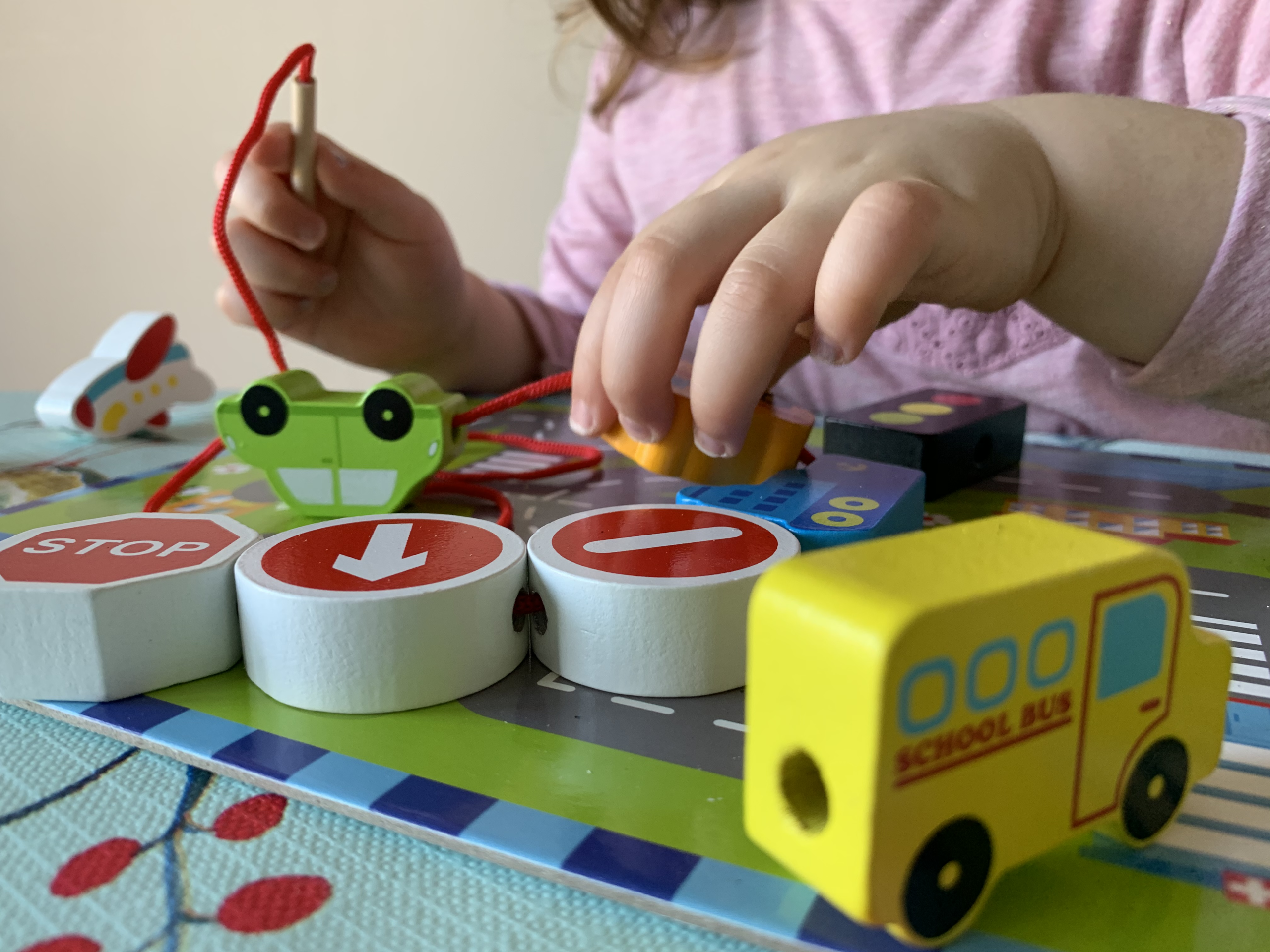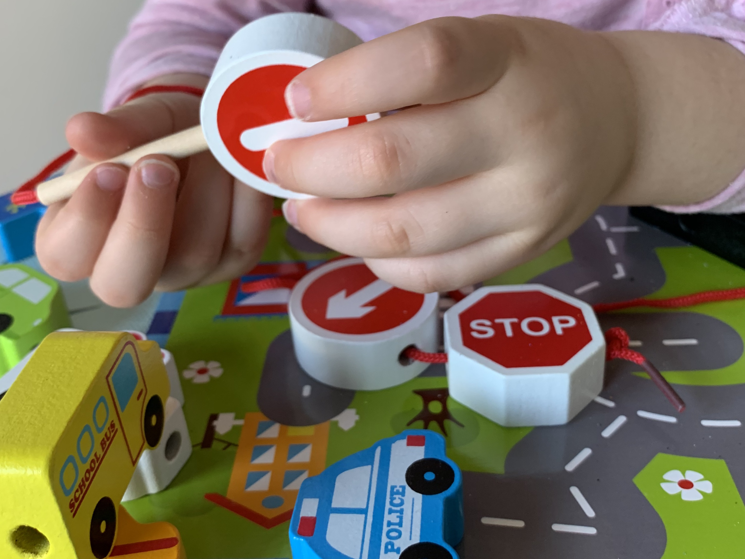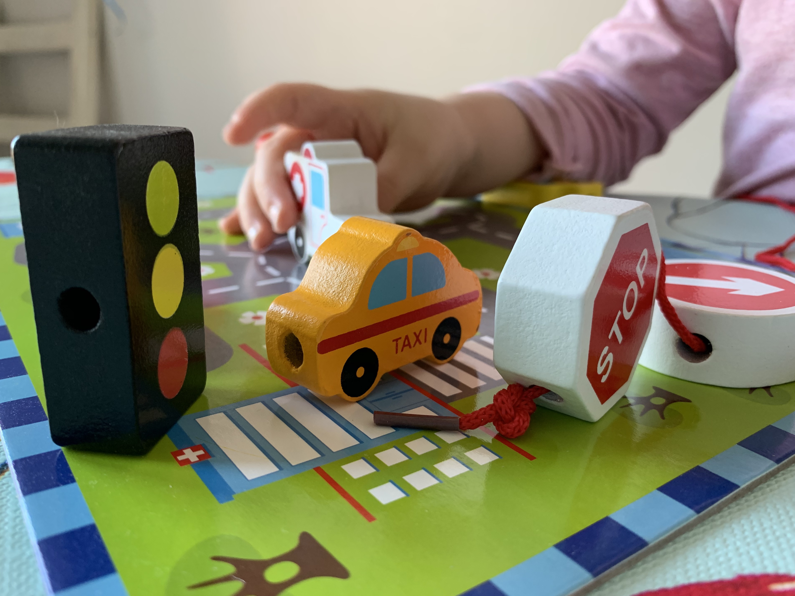 Πραγματικά λατρεύουμε τα παιχνίδια στα οποία τα παιδιά καλούνται να περάσουν ένα κορδόνι μέσα από διάφορα ξύλινα αντικείμενα. Εκπληκτική εξάσκηση της λεπτής κινητικότητάς τους, μια δεξιότητα απαραίτητη αργότερα στην γραφή. Τα ξύλινα αυτοκίνητα, ο χαρτονένιος αυτοκινητόδρομος και τα σήματα οδικής κυκλοφορίας και το φανάρι θα ενθουσίασουν κάθε επίδοξο οδηγό, ενώ η υφασμάτινη θήκη θα του επιτρέψει να έχει το αγαπημένο του παιχνίδι πάντα μαζί του! • Διαστάσεις: 30 × 22 × 3.2 εκ.• Ηλικία: 2+• Υλικό: Φυσικό ξύλο