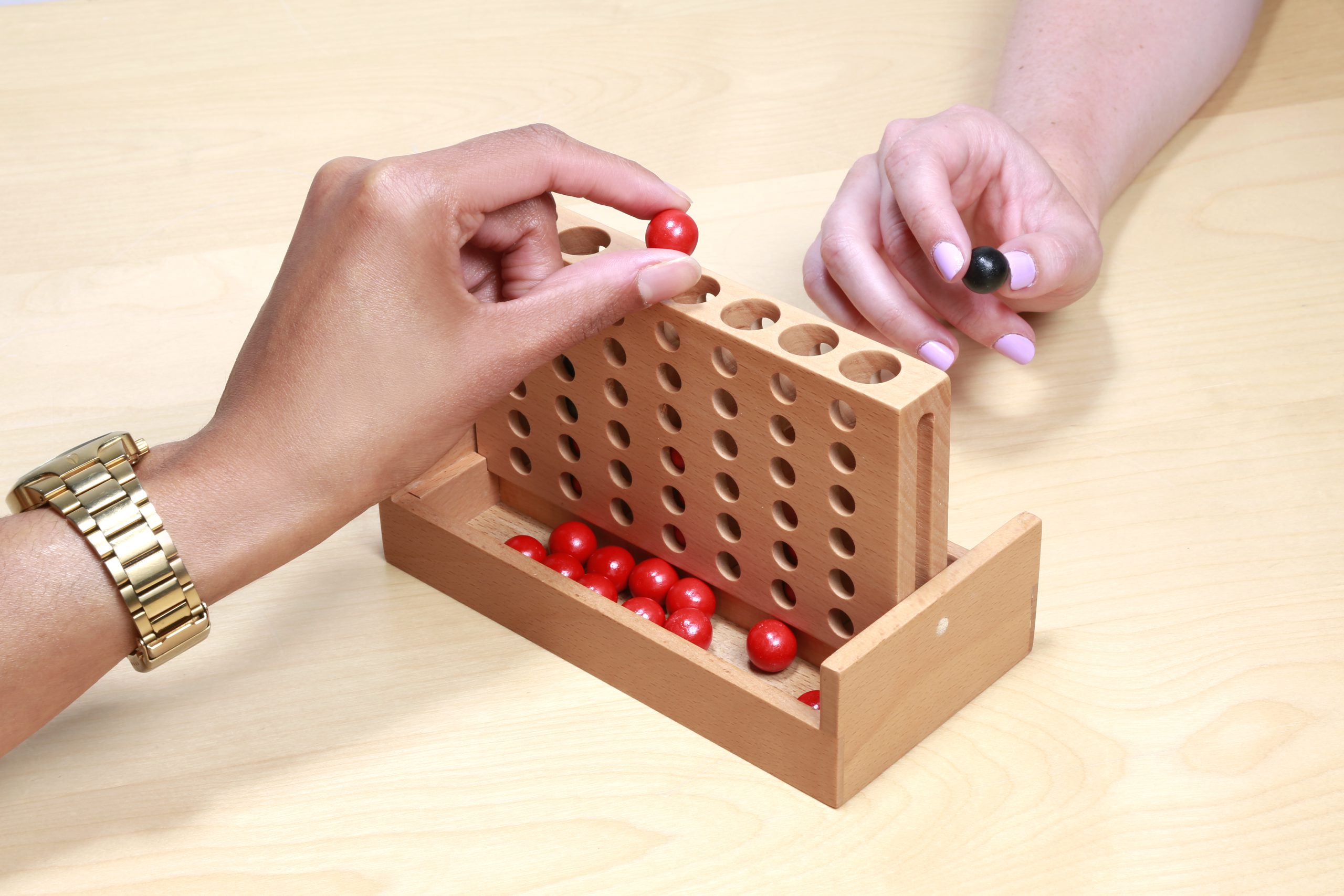 Κυριακή και όλη η οικογένεια είναι μαζεμένη στο σπίτι; Ώρα για επιτραπέζια! Ξέχνα το Cluedo, το Taboo, το Scrabble και όλα τα υπόλοιπα και δοκίμασε κάτι διαφορετικό. Το παιχνίδι σκορ 4 είναι ένα κλασικό και διασκεδαστικό παιχνίδι στρατηγικής, ιδανικό για 2 παίκτες. Ρίξε τις μάρκες σου, πέτυχε 4 στη σειρά και νίκησε τον αντίπαλο σου!• Υλικό: Ξύλο Οξιάς, Ξύλο Κερασιάς