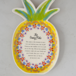 Αυτό το ξεχωριστό, folk art πιατάκι σε σχήμα ανανά θα χαρίσει μια πινελιά στιλ και αισιοδοξίας σε κάθε χώρο. Με τα όμορφα χρώματα του και το ιδιαίτερο σχήμα του, θα ζωντανέψει το τραπεζάκι του χωλ (ναι, είναι ιδανικό για ν' ακουμπάς τα κλειδιά ή τα ψιλά σου), το coffee table σου (για ν' αφήνουν οι καλεσμένοι σου το φακελάκι από το τσαϊ τους, ή για ένα μικρό βούτημα) ή το κομοδίνο σου (ακούμπησε εκεί τα καθημερινά σου μικροκοσμήματα ή τα χάπια σου). Μικρό, χαριτωμένο και πρακτικό! Η όμορφη συσκευασία του το καθιστά ένα ξεχωριστό δώρο... Γέμισέ το σπιτικά γλυκάκια και κάνε έκπληξη στους γείτονες ή στους κολλητούς σου.