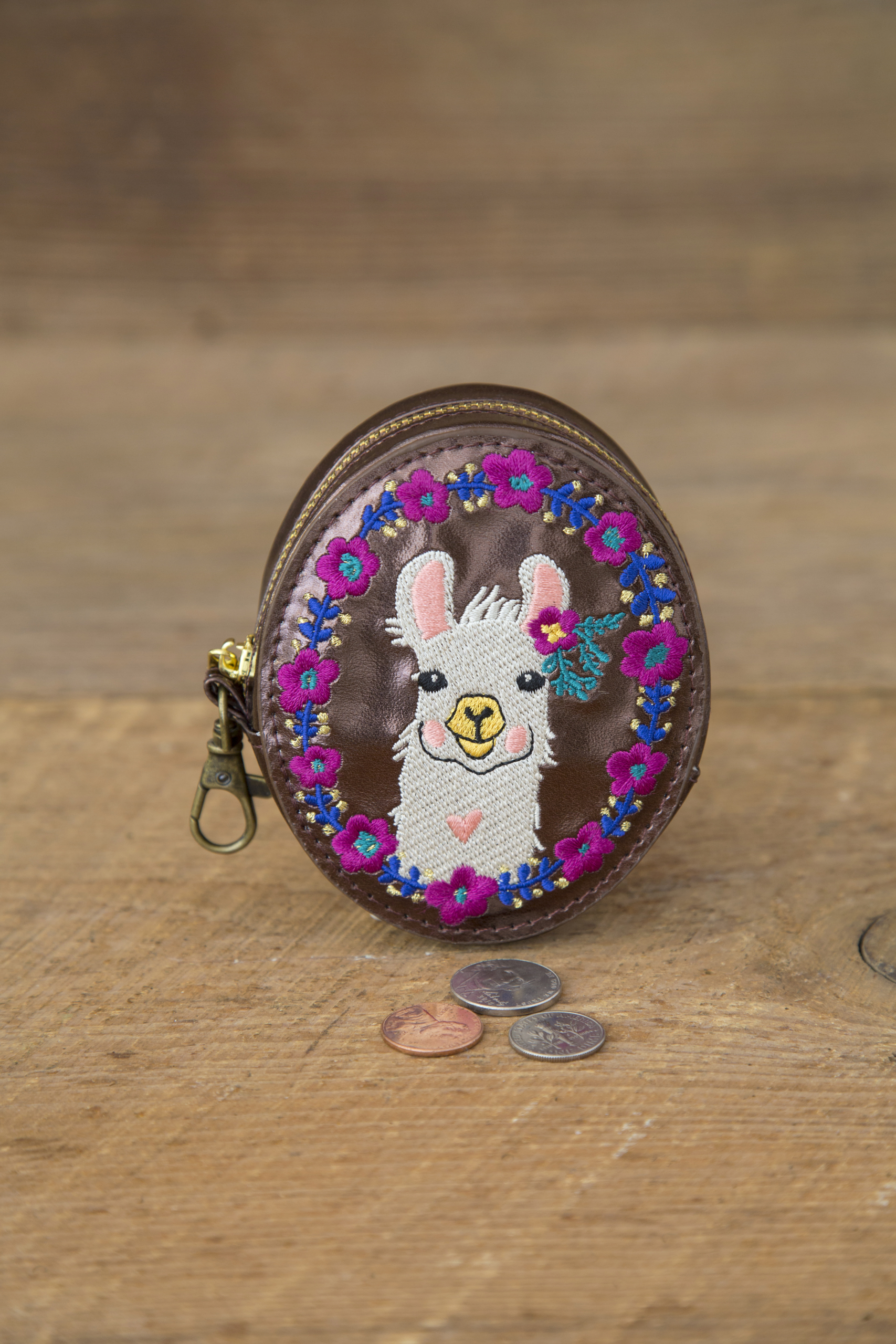 Γιατί να έχεις μια βαρετή θήκη για τα ψιλά σου, όταν μπορείς να έχεις αυτό το τόσο όμορφο πορτοφολάκι-μπρελόκ! Εξαιρετικά χαριτωμένο, κεντημένο, με φερμουάρ, κατασκευασμένο από γυαλιστερό οικολογικό δέρμα αποτελεί την πιο όμορφη και διασκεδαστική προσθήκη στα κλειδιά ή στο σακίδιο σου αφού χρησιμοποιείται και ως μπρελόκ.