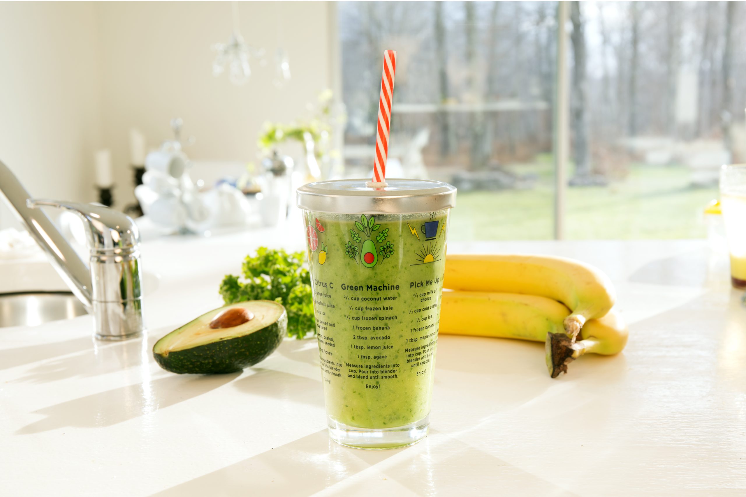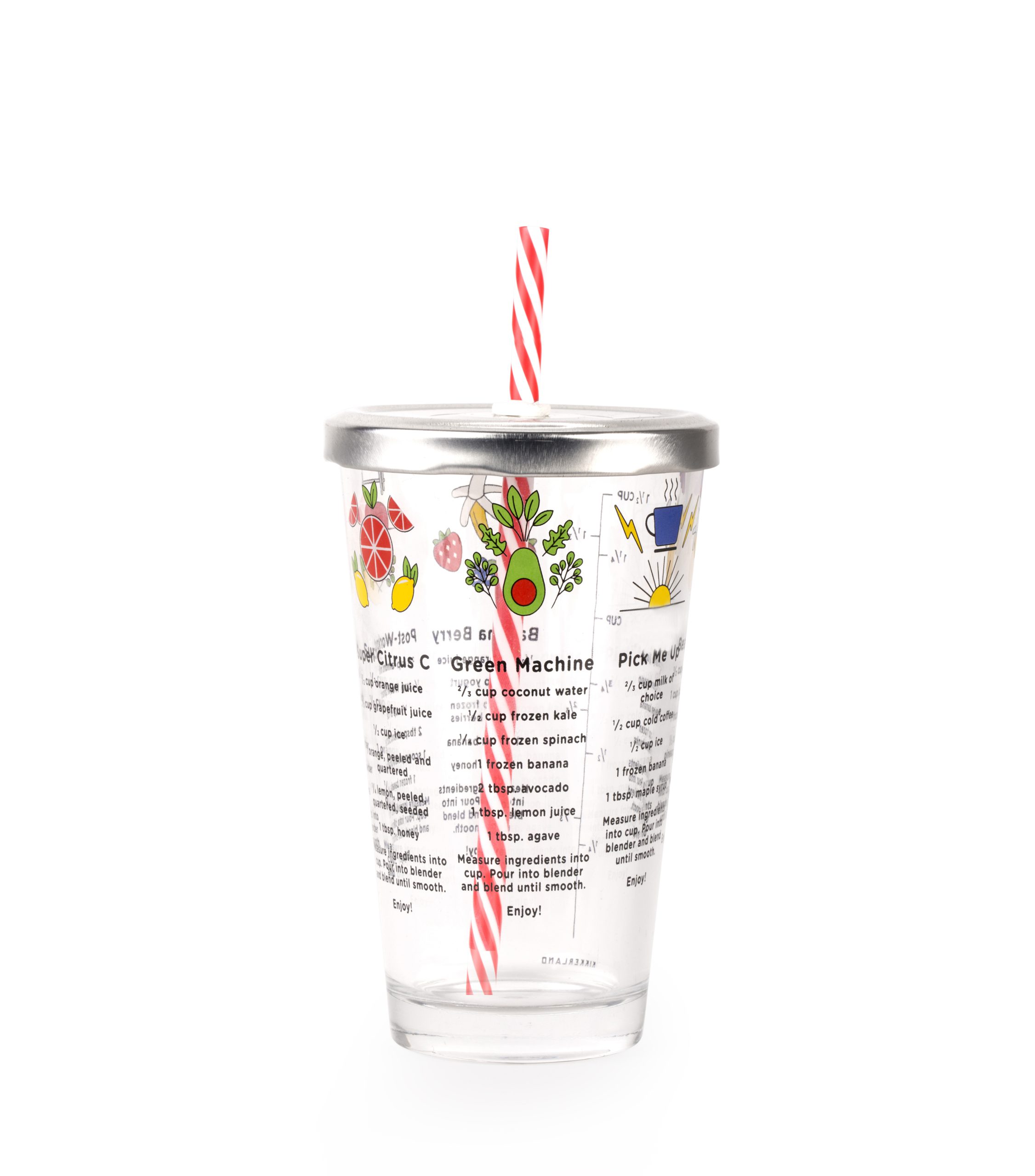 Εάν έχεις κάνει στροφή προς την υγιεινή διατροφή, αυτό το ποτήρι για smoothies είναι ιδανικό για σένα! Εκτός από όμορφο και εύχρηστο, με καλαμάκι για να απολαμβάνεις τα smoothies που φτιάχνεις on the go και χωρητικότητα 475 ml, έχει συνταγές για 6 υγιεινά smoothies τυπωμένες στο γυαλί. Εσύ ποια συνταγή θα δοκιμάσεις πρώτη; Το Green Machine ή το Pick me Up;• Υλικό: Πολυαιθυλένιο Βαθμού Τροφίμων, Γυαλί, Ανοξείδωτο Ατσάλι