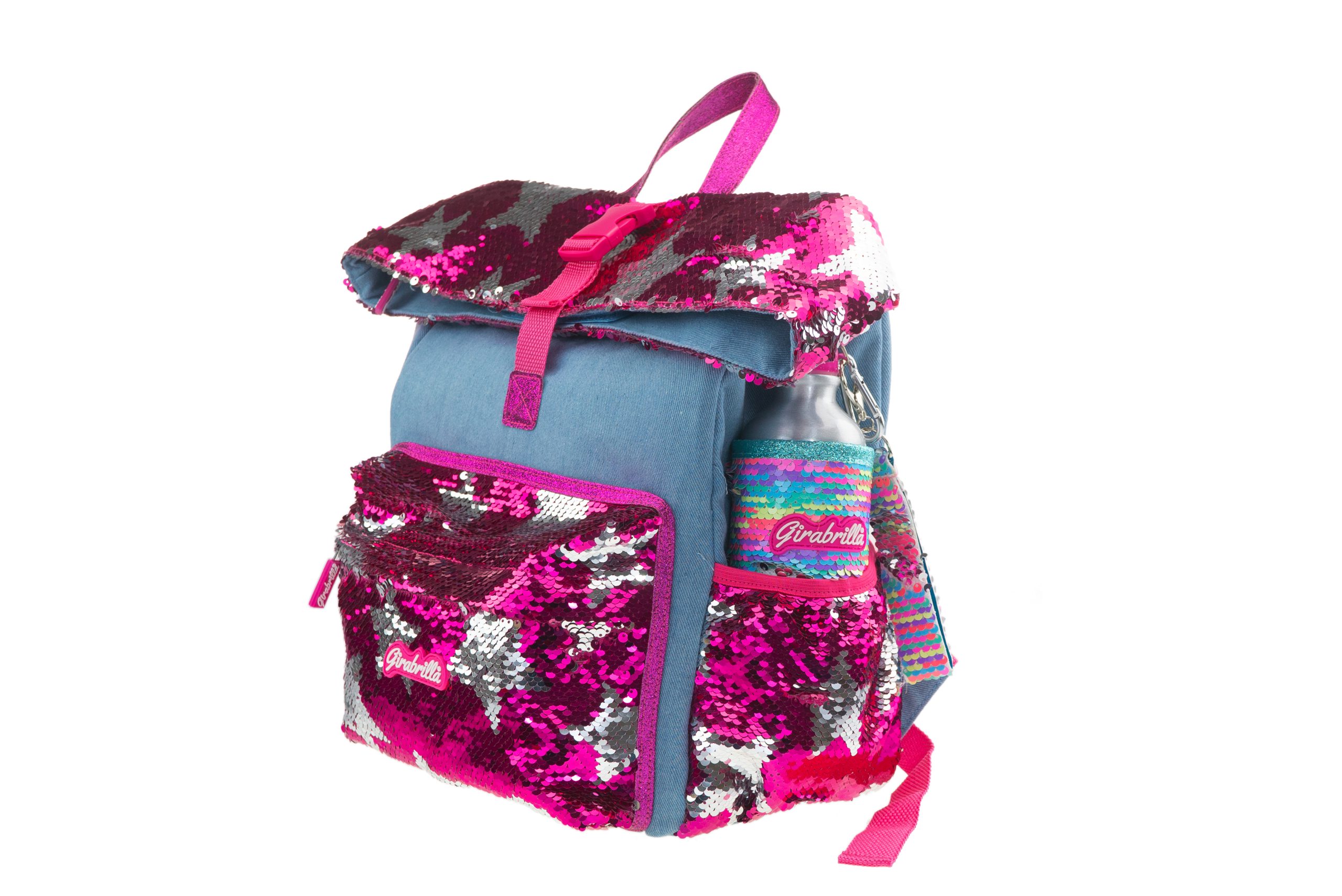 Ποιος έχει το πιο ωραίο σακίδιο; Η δική σας μικρή, εάν της χαρίσετε το σακίδιο με παγιέτες Roll Top από τη Lazy Suricata! Οι παγιέτες διπλής όψης του δίνουν ένα όμορφο, glam look που μπορεί να συμπληρώσει την εμφάνισή της όμορφα.Με άπλετο χώρο για να μεταφέρει ό,τι χρειάζεται, μπροστινή τσέπη για ηλεκτρονικά και πλάγια θήκη για παγούρι, είναι το ιδανικό αξεσουάρ για κάθε ώρα της ημέρας! Αποκτήστε το σήμερα! • Διαστάσεις: 28 x 36 x 16 εκ.• Ηλικία: 6+