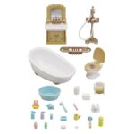 Το Σετ μπάνιου για εξοχικό είναι ένα τέλειο σετ επίπλων για να το προσθέσετε στο σπίτι των Sylvanian Families. Διαθέτει μπανιέρα, νιπτήρα, ντους και τουαλέτα. Ο νεροχύτης έχει καθρέφτη και ντουλάπια αποθήκευσης. Περιλαμβάνονται επίσης μικρά αξεσουάρ όπως καλάθι για τα άπλυτα, σαπούνι, μπουκαλάκια και βούρτσες.