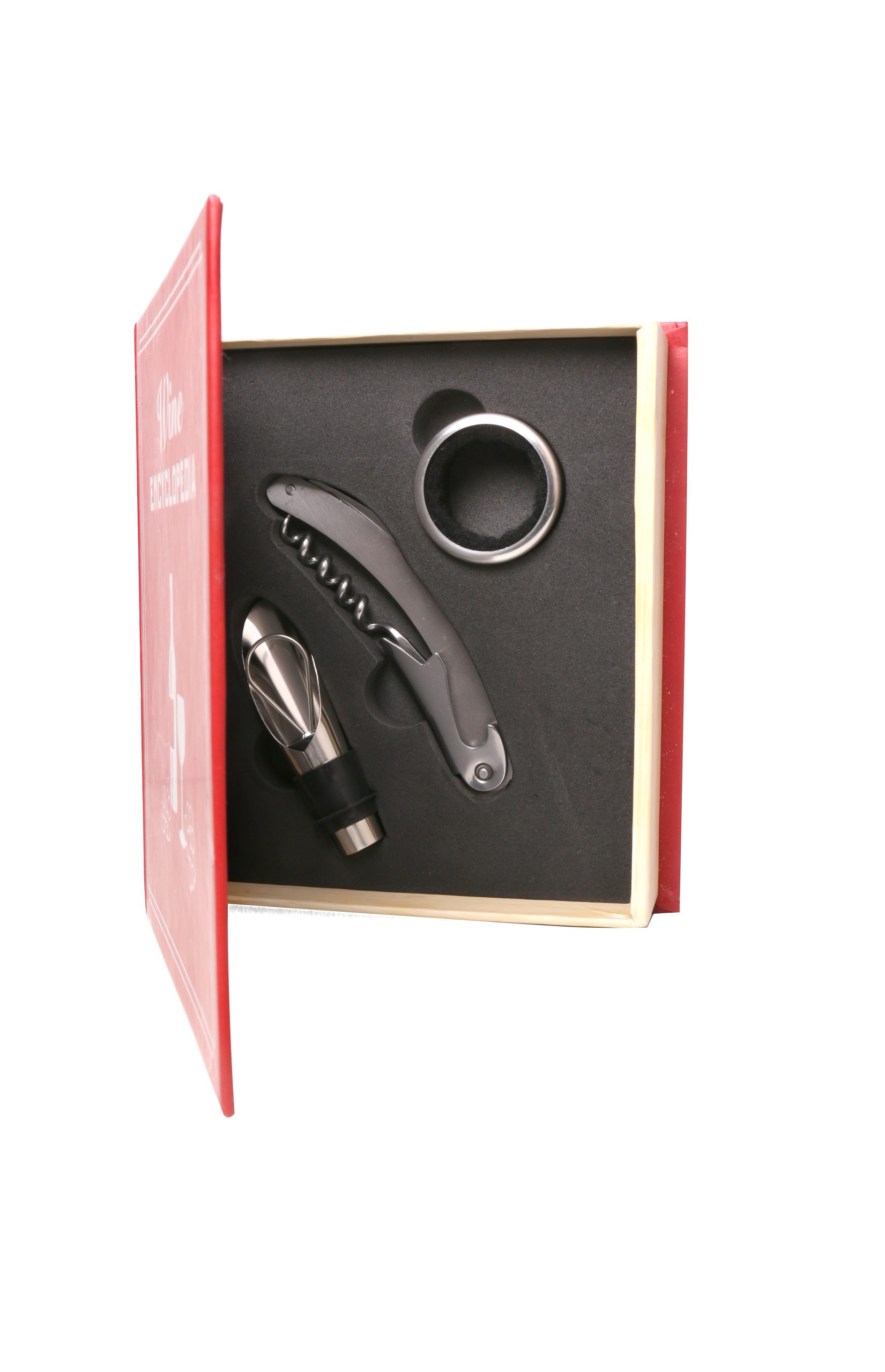 Ανοίγοντας το "Wine Encyclopedia", δεν θα μάθεις περισσότερα για τα κρασιά. Γιατί δεν χρειάζεται να μάθεις. Εσύ είσαι wine connoisseur και αυτό που χρειάζεσαι δεν είναι περισσότερη γνώση, αλλά ευκολία! Γι' αυτό, μέσα θα βρεις τοποθετημένα προσεκτικά εργαλεία που θα κάνουν το άνοιγμα που κρασιού παιχνιδάκι. Το σετ κρασιού σε θήκη βιβλίου περιλαμβάνει τιρμπουσόν, στόμιο σερβιρίσματος με πώμα και δαχτυλίδι σερβιρίσματος. Είναι το τέλειο δώρο για φίλους που αγαπούν το κρασί, ή απλά το ιδανικό εργαλείο για να δώσεις γεύση στο Σαββατόβραδό σου!