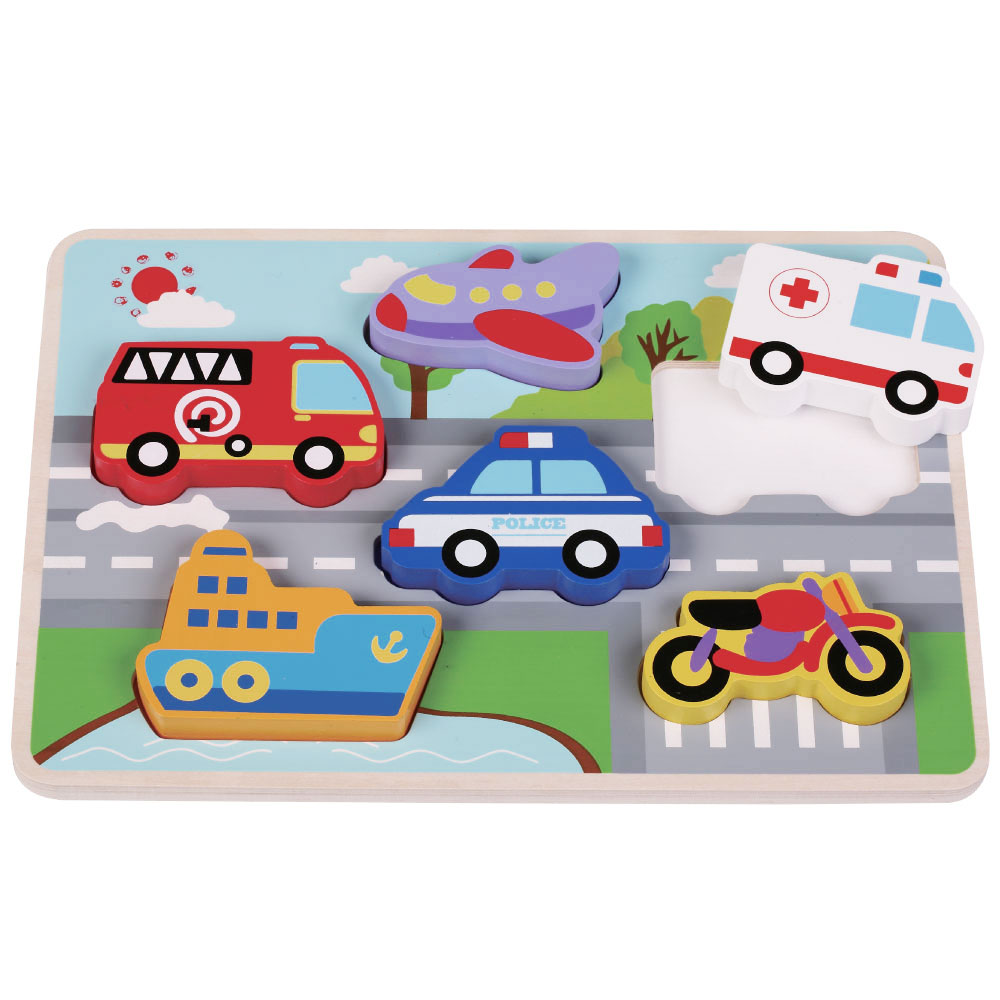 Ένα πανέμορφο, ξύλινο παζλ με σφήνες οχήματα, που θα ξετρελλάνει κάθε επίδοξο οδηγό. Το όμορφο αυτό παιχνίδι ενισχύει το συντονισμό ματιού-χεριού, γεμίζοντας αυτοπεποιήθηση τα μωρά και τα νήπια ενός έτους και άνω, ενώ ταυτόχρονα τα βοηθά να εξασκήσουν τη λεπτή τους κινητικότητα και να αναγνωρίζουν ευκολότερα τα διαφορετικά σχήματα. • Συντονισμός χεριών και ματιών• Διαστάσεις: 30 × 21 × 2 εκ.• Ηλικία: 1+• Υλικό: Φυσικό ξύλο