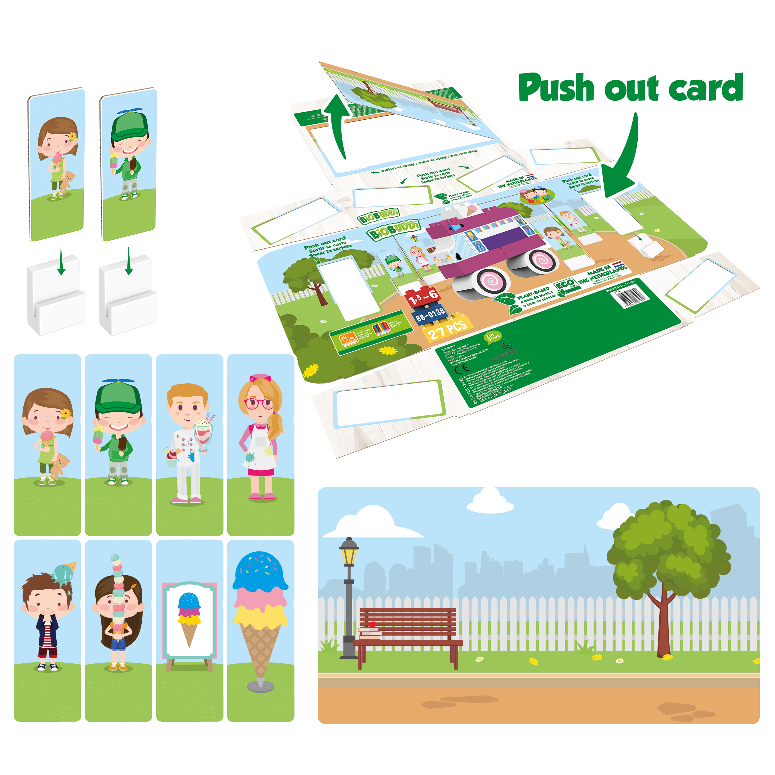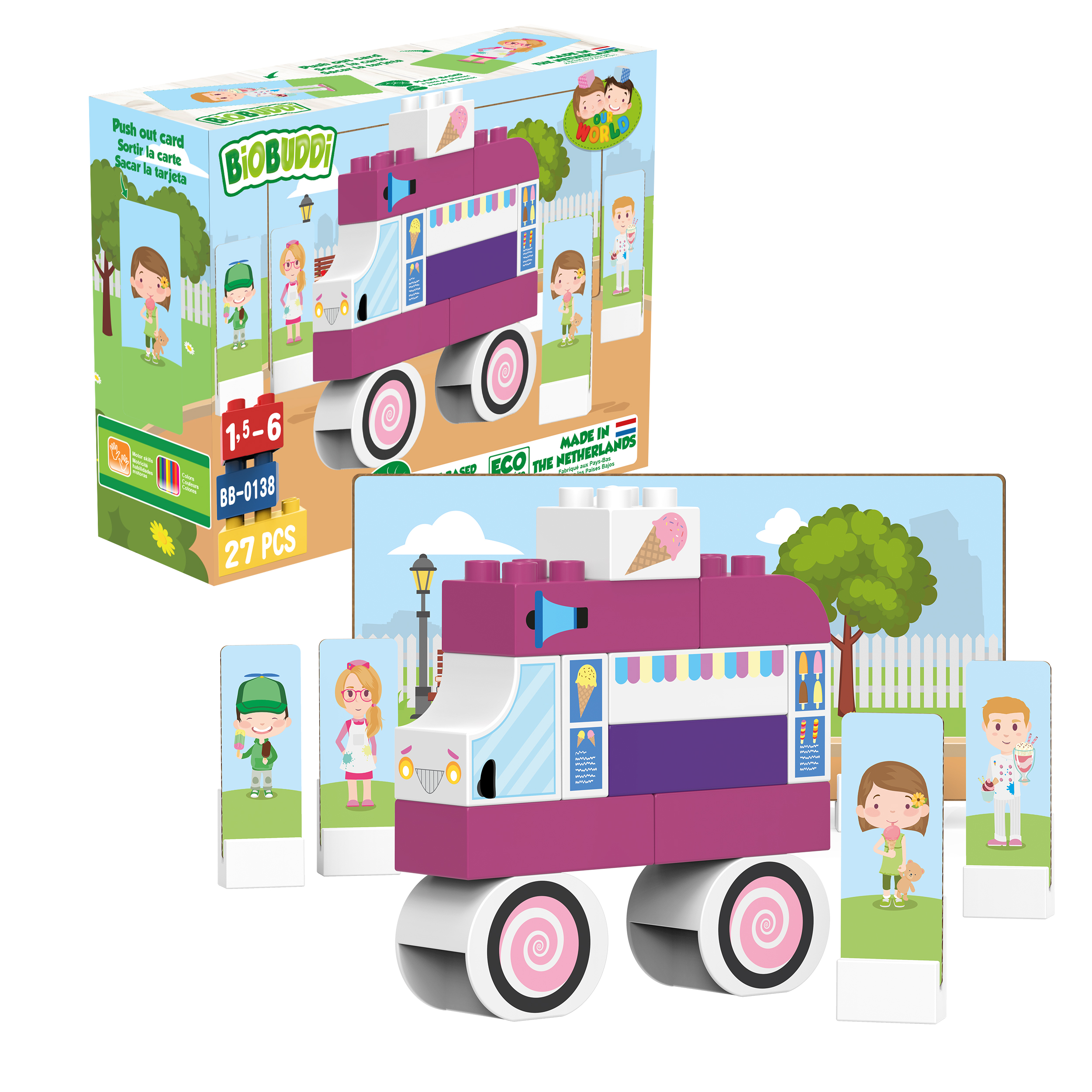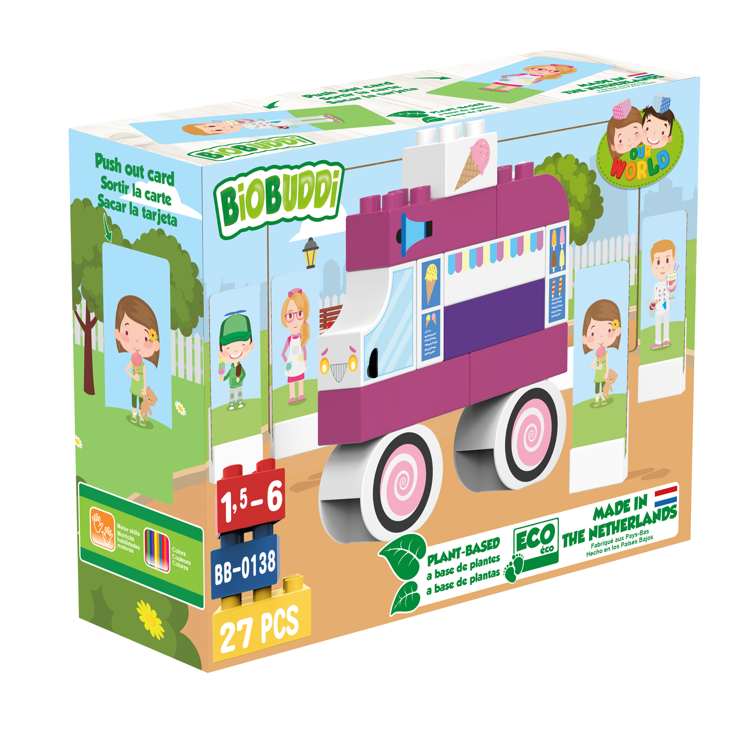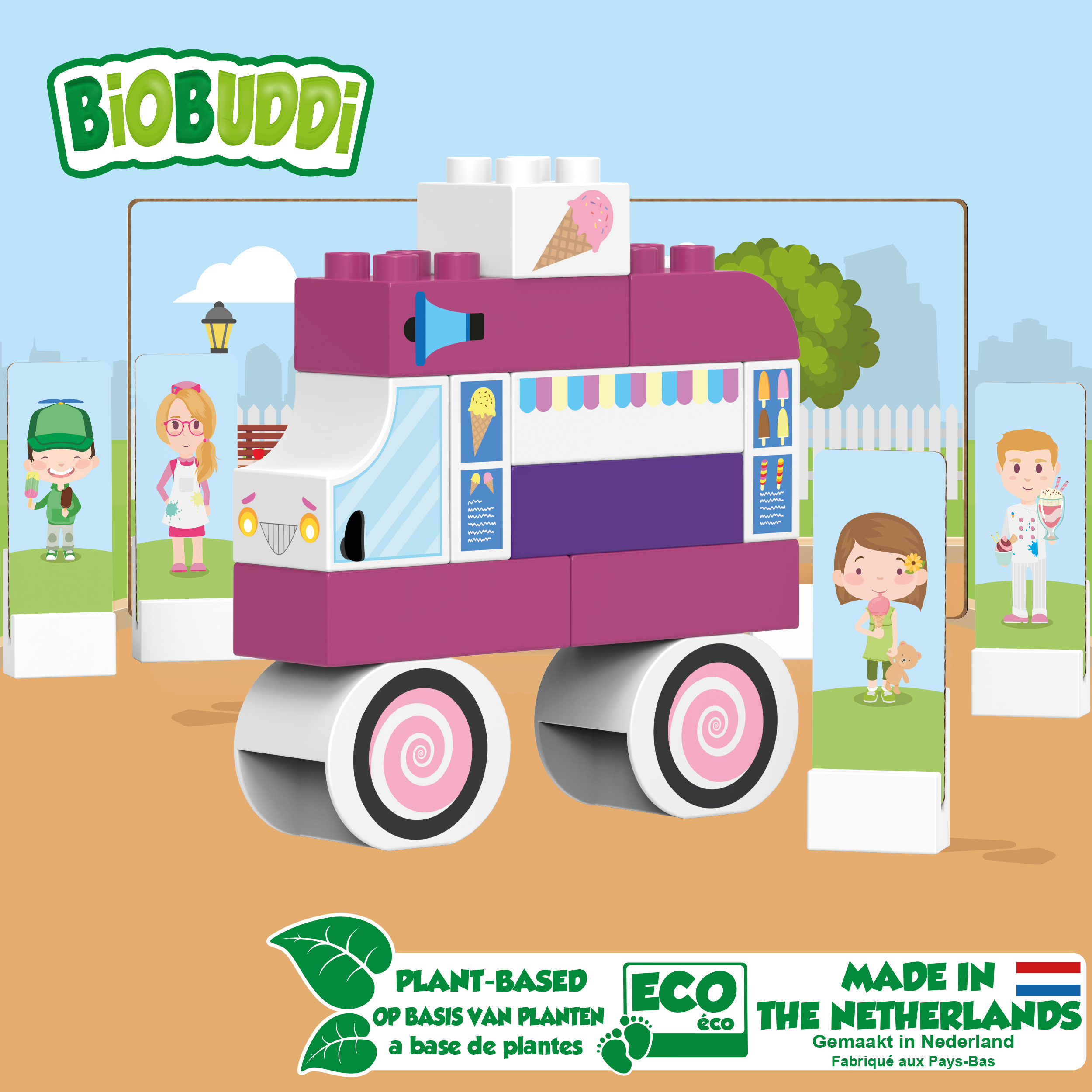 Τα τουβλάκια Biobuddi κατασκευάζονται από υπολείμματα φυτών ζαχαροκάλαμου που παράγονται στην Ολλανδία. Είναι φιλικά προς το περιβάλλον, βιώσιμα, ανακυκλώσιμα και ειδικά σχεδιασμένα για μικρά παιδιά.Τα παιδιά μπορούν να συνδυάσουν τα πολύχρωμα τουβλάκια και με άλλου είδους mega blocks για να ζωντανέψουν τη φαντασία τους εξασκόντας έτσι δημιουργικές τους δεξιότητες,όπως μάθηση χρωμάτων, σχημάτων και πολλά άλλα.
