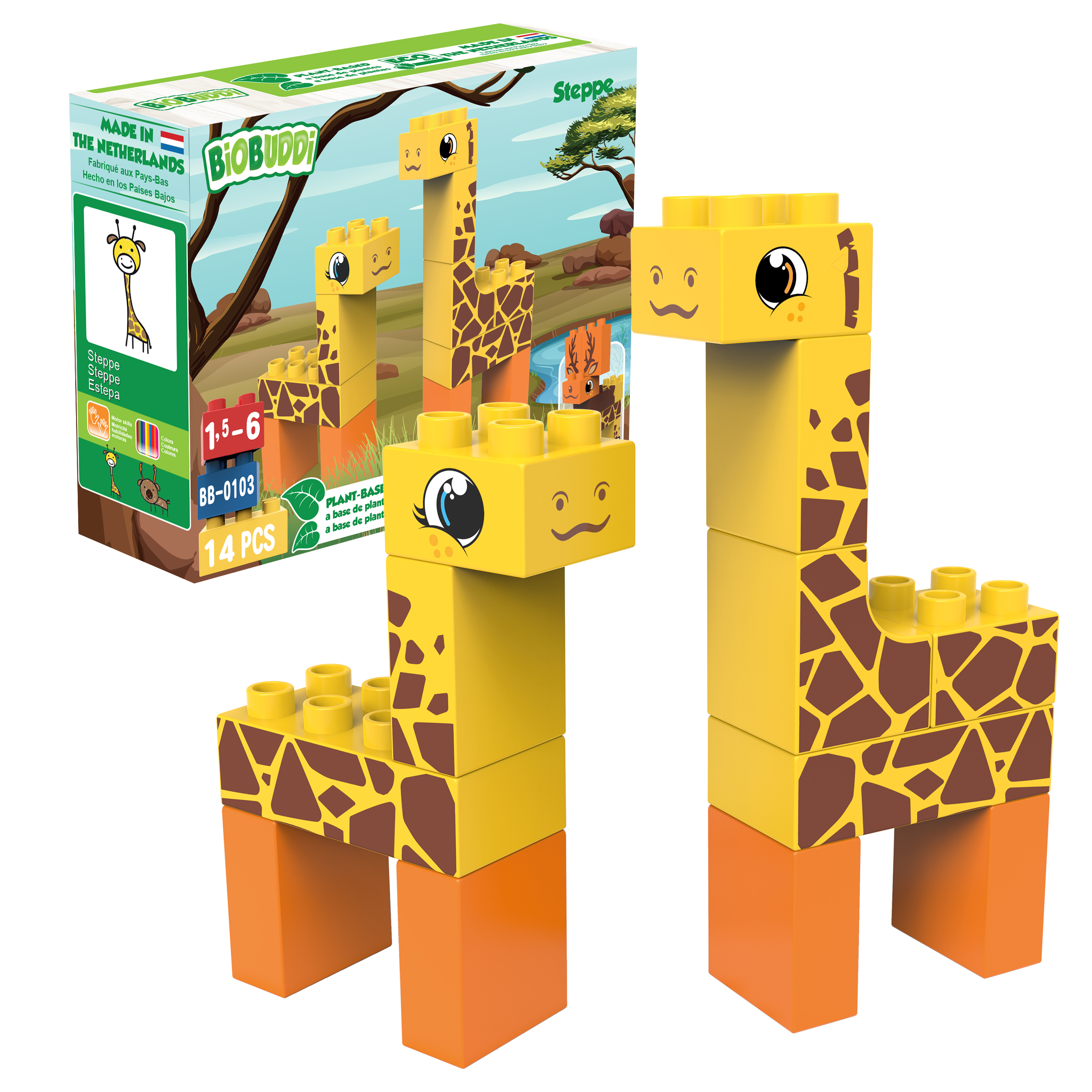 Τα τουβλάκια Biobuddi κατασκευάζονται από υπολείμματα φυτών ζαχαροκάλαμου που παράγονται στην Ολλανδία. Είναι φιλικά προς το περιβάλλον, βιώσιμα, ανακυκλώσιμα και ειδικά σχεδιασμένα για μικρά παιδιά.Τα παιδιά μπορούν να συνδυάσουν τα πολύχρωμα τουβλάκια και με άλλου είδους mega blocks για να ζωντανέψουν τη φαντασία τους εξασκόντας έτσι δημιουργικές τους δεξιότητες,όπως μάθηση χρωμάτων, σχημάτων και πολλά άλλα.
