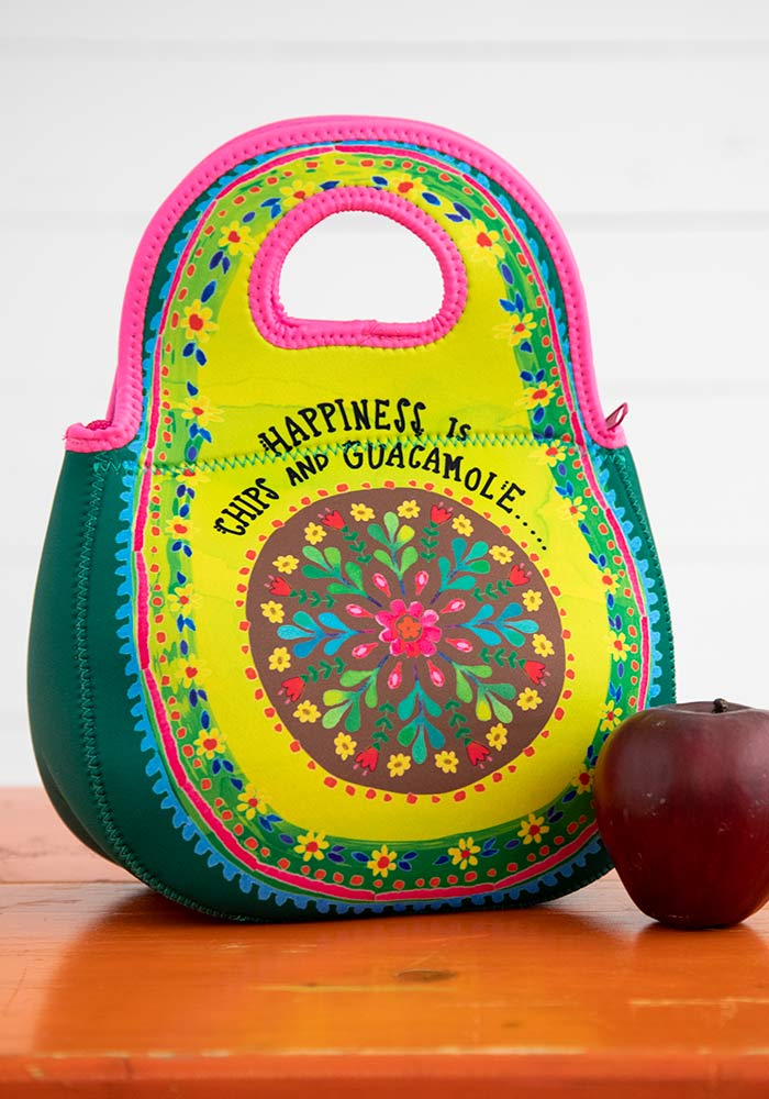 Γιατί καμια φορά, η ευτυχία είναι απλώς ένα μπολ με τσιπς και φρέσκο guacamole! Λατρεύουμε αυτό το μικρό lunch bag γιατί έχει υπέροχα χρώματα, μας κάνει να χαμογελάμε, διπλώνει για να αποθηκεύεται εύκολα, δεν πιάνει πολύ χώρο και χάρη στη μόνωση neoprene διατηρεί το φαγητό δροσερό ή ζεστό για ώρες. Το παιχνιδιάρικο εικαστικό του, οι φωτεινές ροζ λεπτομέρειες και το τέλειο σχήμα του θα σε γοητεύσουν και θα σε βολέψουν! Τέλειο για να μεταφέρεις ένα μικρό τάπερ με φαγητό, το σνακ και το φρούτο σου, ή ακόμα τα σάντουιτς για ένα αυθόρμητο πικνικ στην παραλία! Ιδανικό μέγεθος για παιδιά.