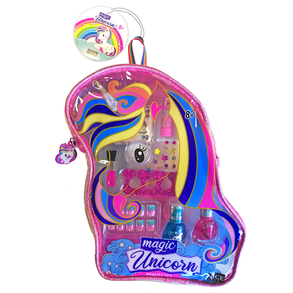 Χαρίστε της την ομορφιά σε ένα τσαντάκι!Αν η μικρή σας είναι fan των μονόκερων, ανακαλύψτε το τσαντάκι σετ μακιγιάζ από τη Lazy Suricata!Διαφανές και σε σχήμα μονόκερου, μπορεί να το πάρει οπουδήποτε, οποιαδήποτε στιγμή και να συμπληρώσει το look της!Στο τσαντάκι θα βρει ένα μικρό σετ μακιγιάζ που περιλαμβάνει βερνίκι νυχιών, lip gloss, αλλά και διάφορα αξεσουάρ, όλα κατάλληλα για το ευαίσθητο δέρμα της. • Διαστάσεις: 20 x 18 x 5 εκ.